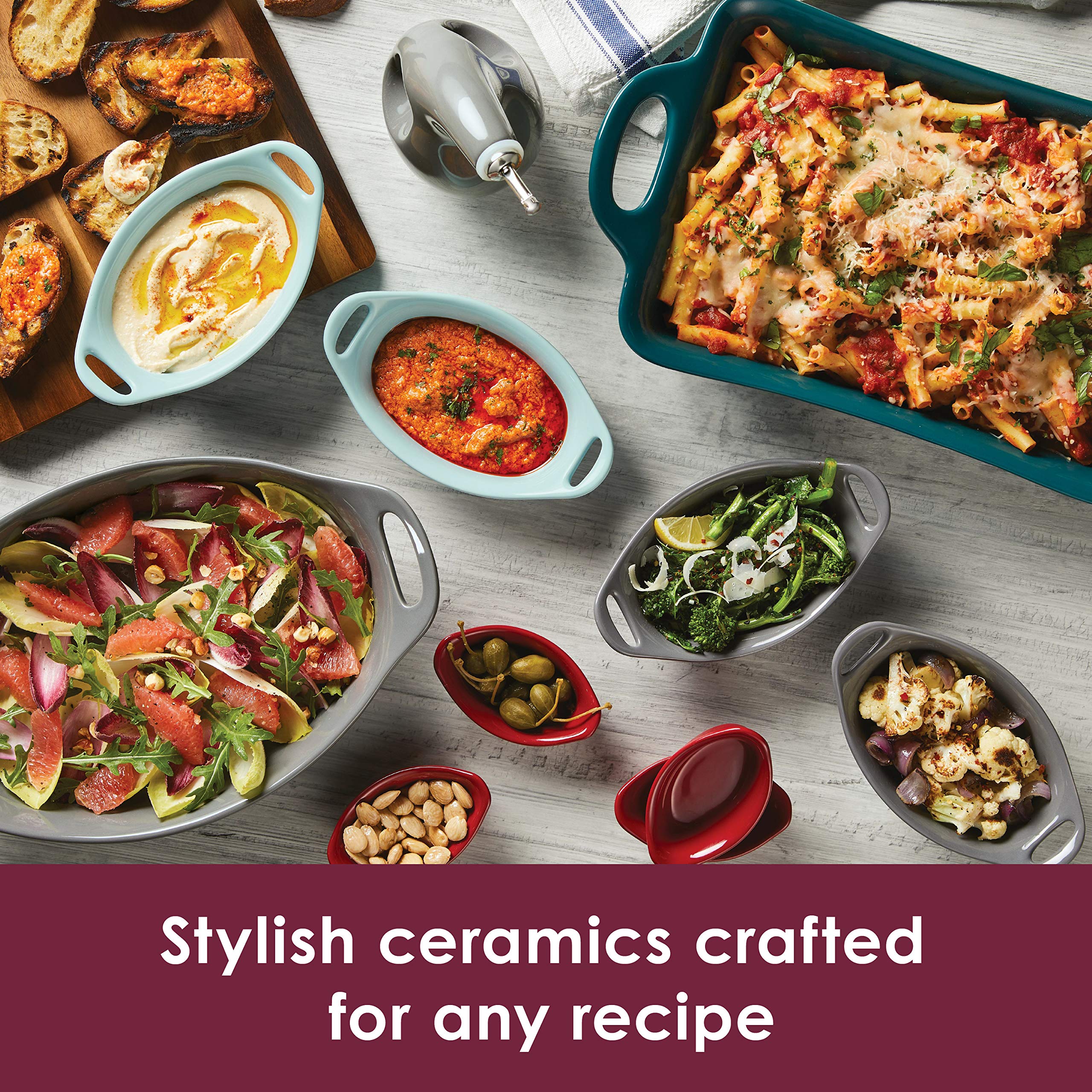 Prep, cook and serve foods with fresh, flavorful oils using the Rachael Ray(r) Ceramics EVOO Dispensing Bottle, the ideal kitchen accessory for drizzling and dispensing at the counter, stove or table. Rachael Ray designed this clever ceramic dispensing bottle to make oils easier and faster to pour around the pan for a couple of "turns." The bottle’s spout is proportioned to help provide perfect pouring control, and a clever freeform handle integrated into the curved bottle design provides ample handhold. Crafted from sturdy, solid ceramics and glazed with amazing color, the 24-ounce bottle is ideal for adding extra virgin olive oil to warm bruschetta, poached fish, savory pasta dishes, and other culinary favorites. Sporting that super, Rachael Ray design and functionality, the ceramic bottle offers relaxed style in the kitchen and at the table. Dishwasher safe for convenience, the eye-catching olive oil bottle complements stylish dinnerware with a pop of personality. And it makes the perfect partner for stoneware dipping cups, salad plates and serveware pieces in Rach’s collection. Drizzle your favorite, freshest olive oils on warm, crusty breads and other delicious foods using the Rachael Ray Ceramics EVOO Dispensing Bottle.
