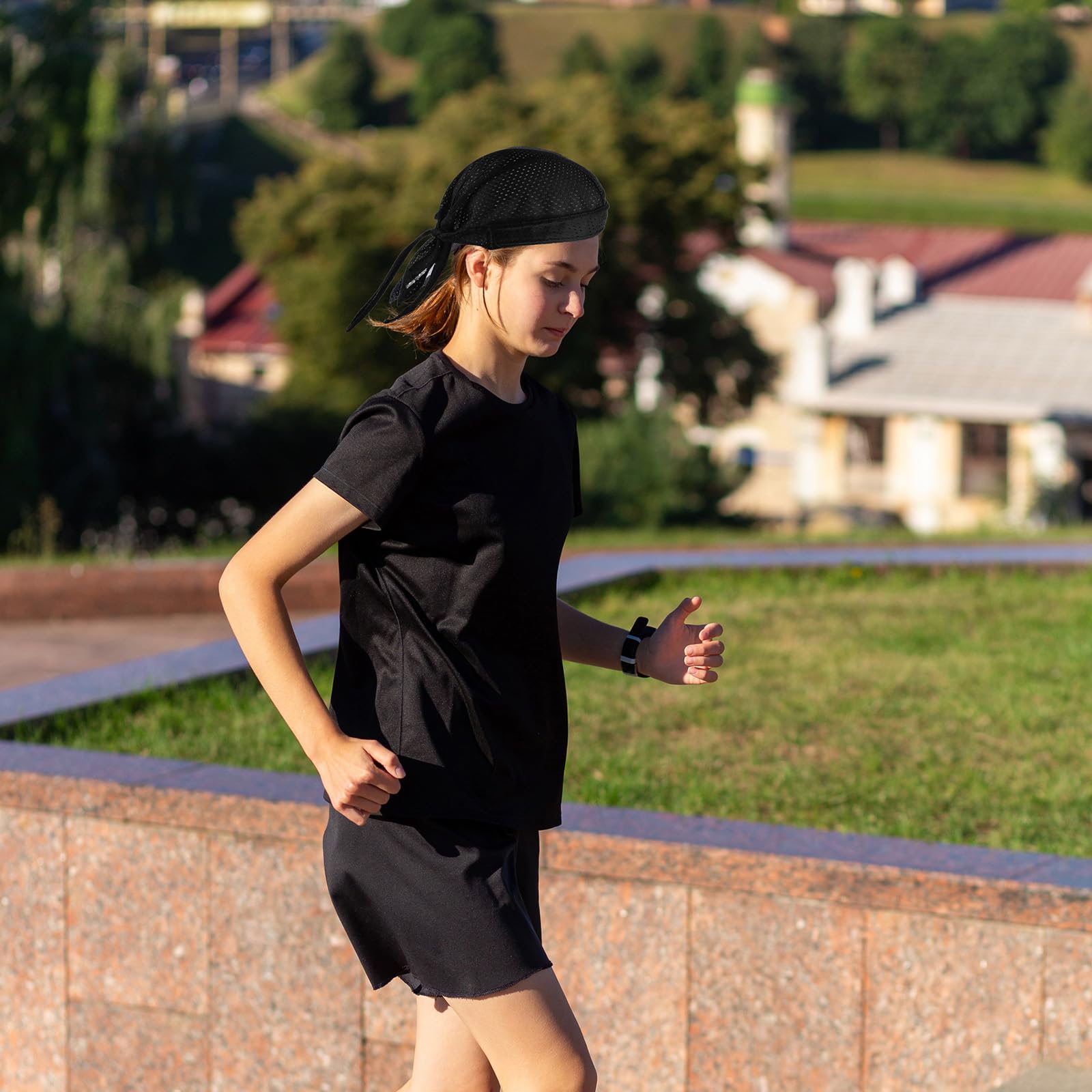 Description Product name: Breathable cycling headscarf Style: Pure black mesh Material: Cotton Packing list: 1pcs