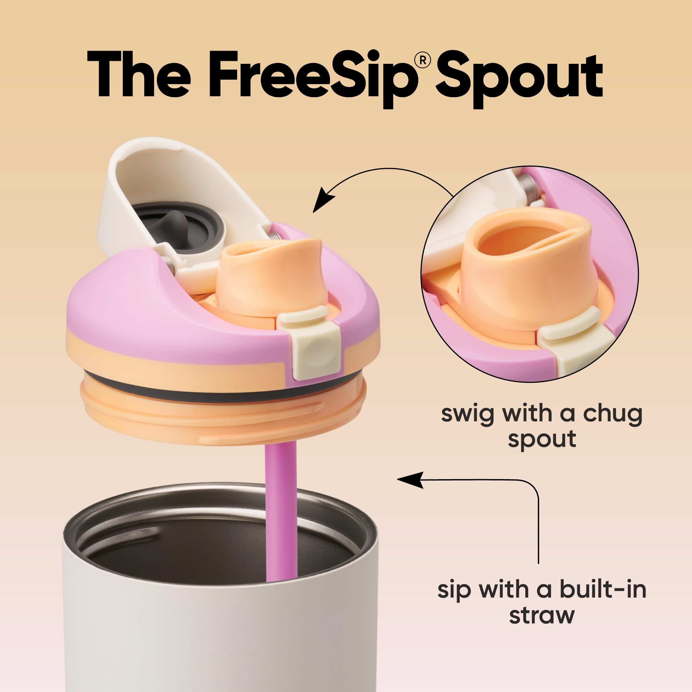 The versatile 2-in-1 FreeSip spout lets you drink upright through a built-in straw or tilt back for a regular swig.