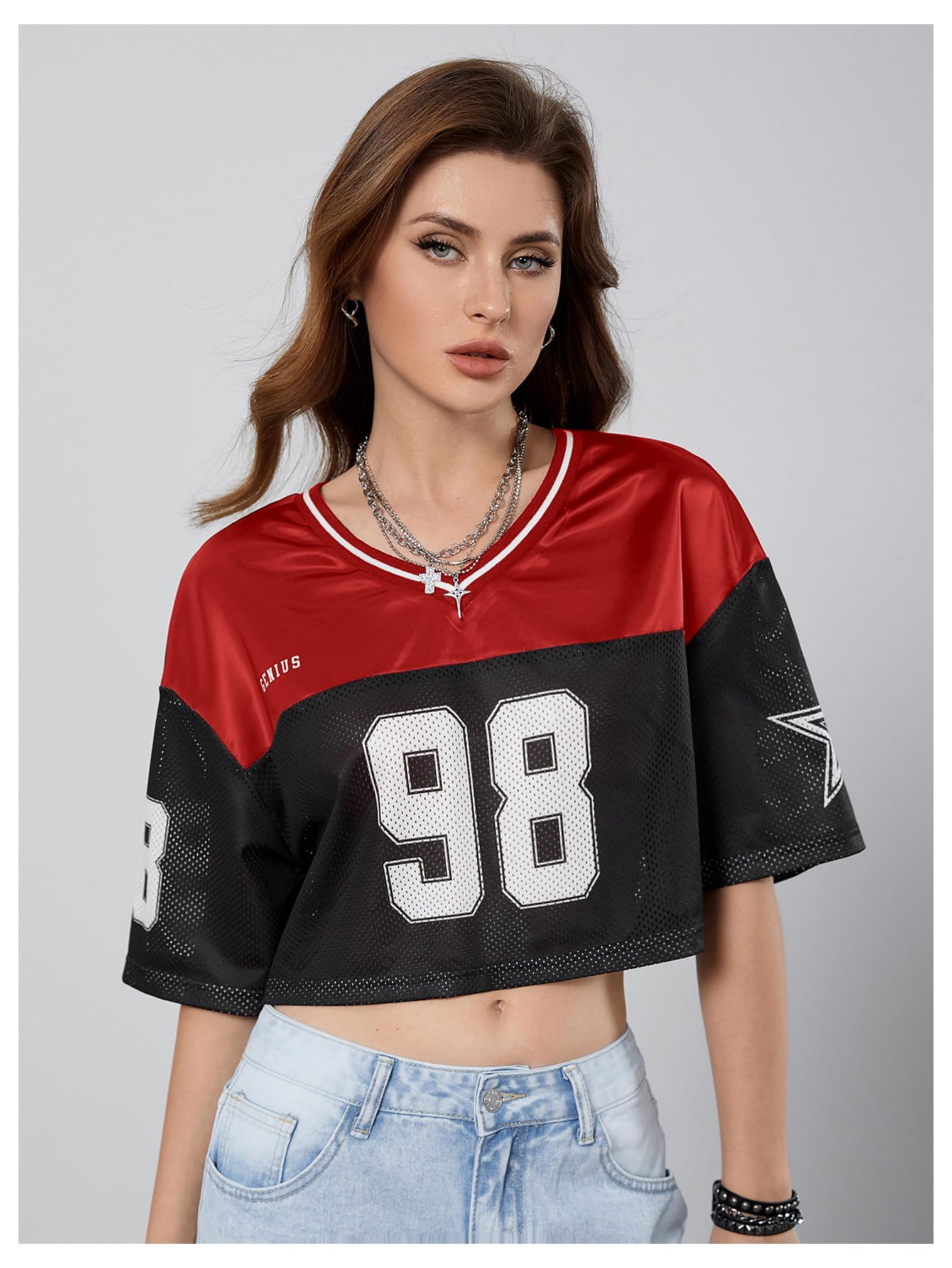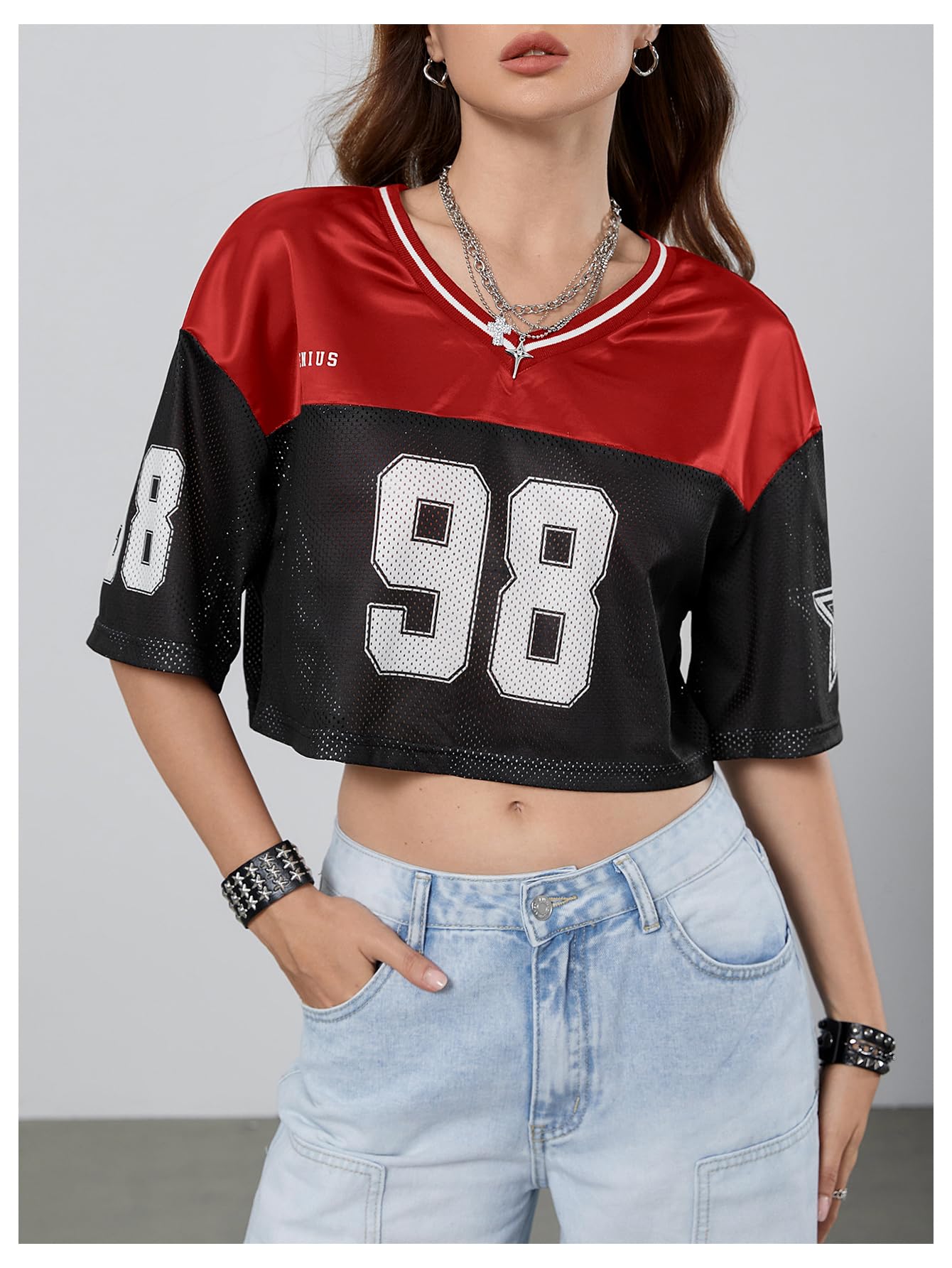 Number graphic t shirts, casual summer tops, contrast binding, y2k style, womens t shirts