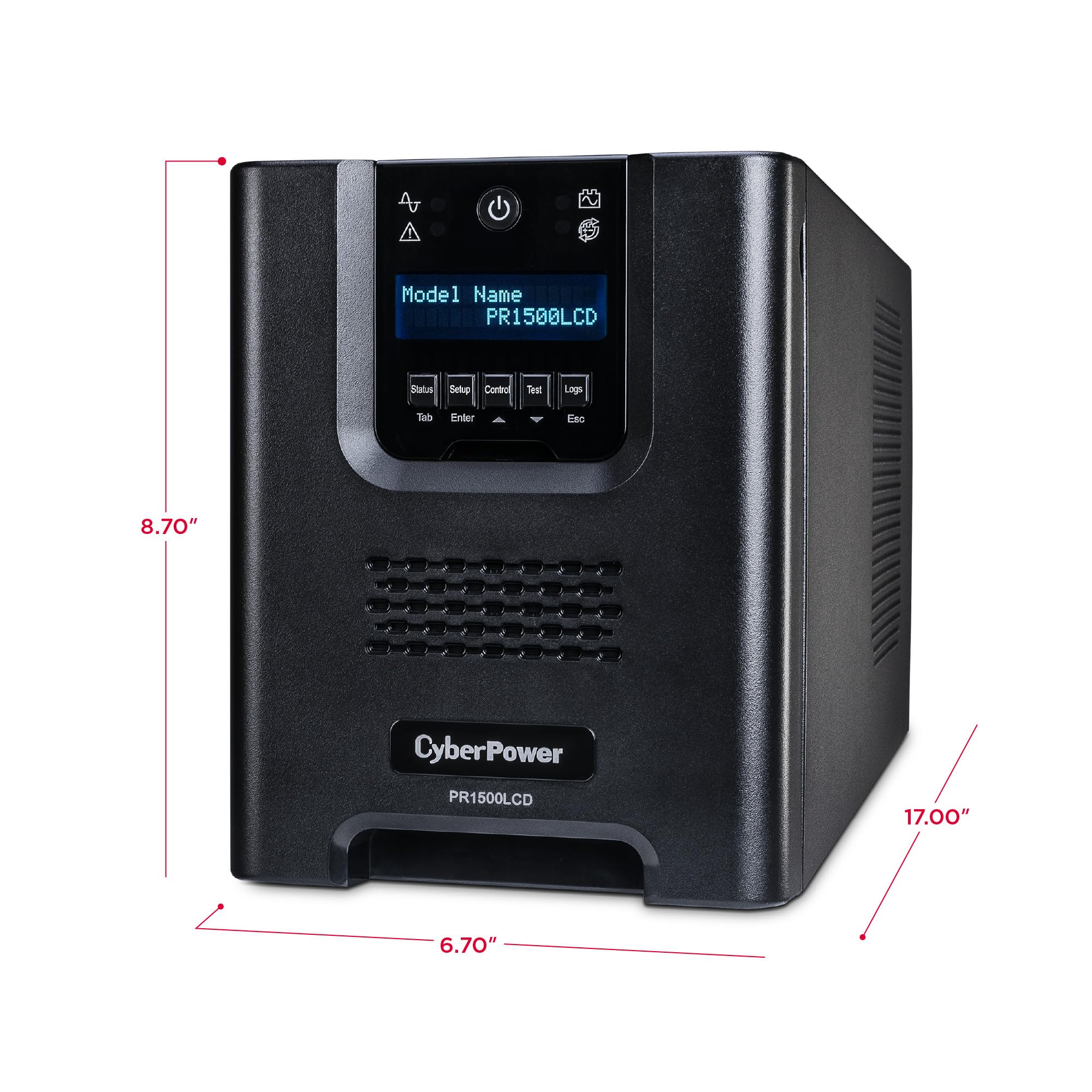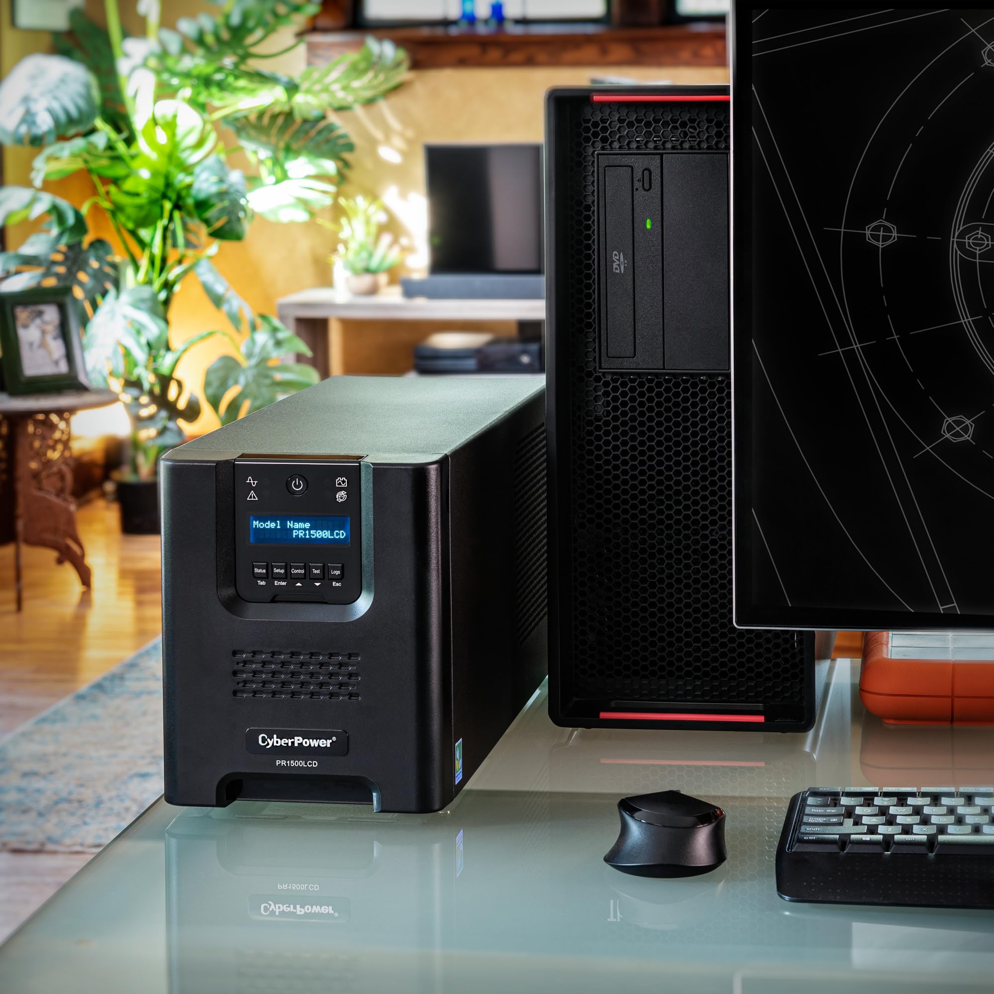 A mini-tower UPS with line interactive topology, the CyberPower smart app Sinewave PR1500LCD Provides battery backup, power protection (using sine wave output), and surge protection for corporate servers, department servers, storage appliances, network devices, and telecom installations requiring Active PFC power source compatibility. The PR1500LCD uses automatic voltage regulation (AVR) to correct minor power fluctuations without switching to battery power, which extends battery life. Aver is essential in areas where power fluctuations occur frequently. The PR1500LCD comes with a three-year and a $375,000 connected equipment.