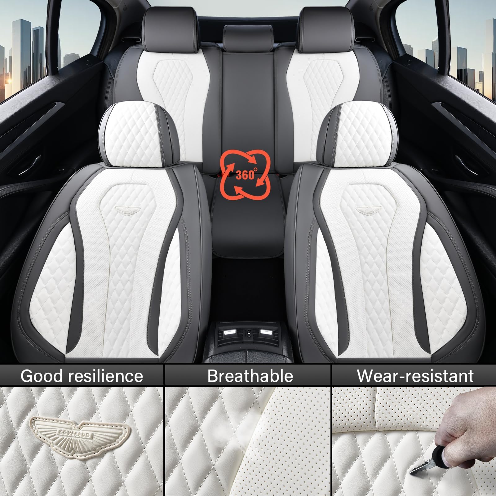 LUXURY DESIGN - These charming car seat covers features a streamlined modern look, premium leather and classic product construction that stands up to daily use. Its luxury coordinateds with most car interior styles, making it the perfect cover for any car