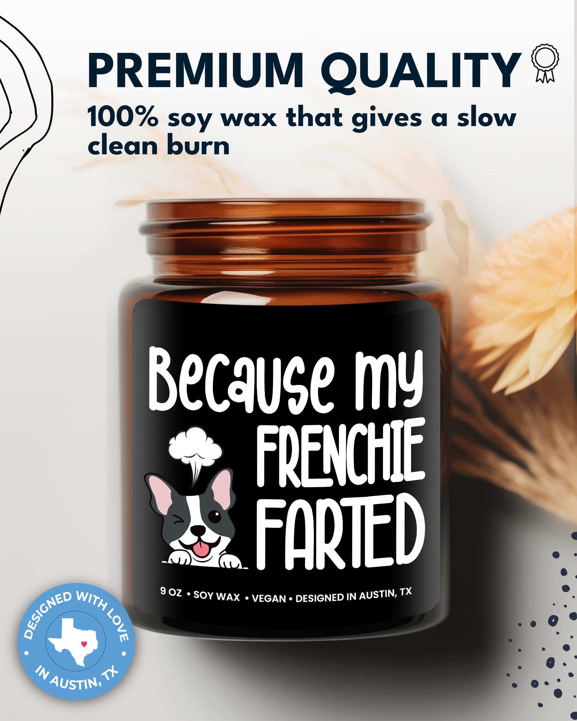 💠Premium Quality: Our 9 oz scented wood wick candle is made from 100% natural soy wax which gives a slow and clean burn. It is also vegan and cruelty-free. Grab your own funny gifts for frenchie lovers!