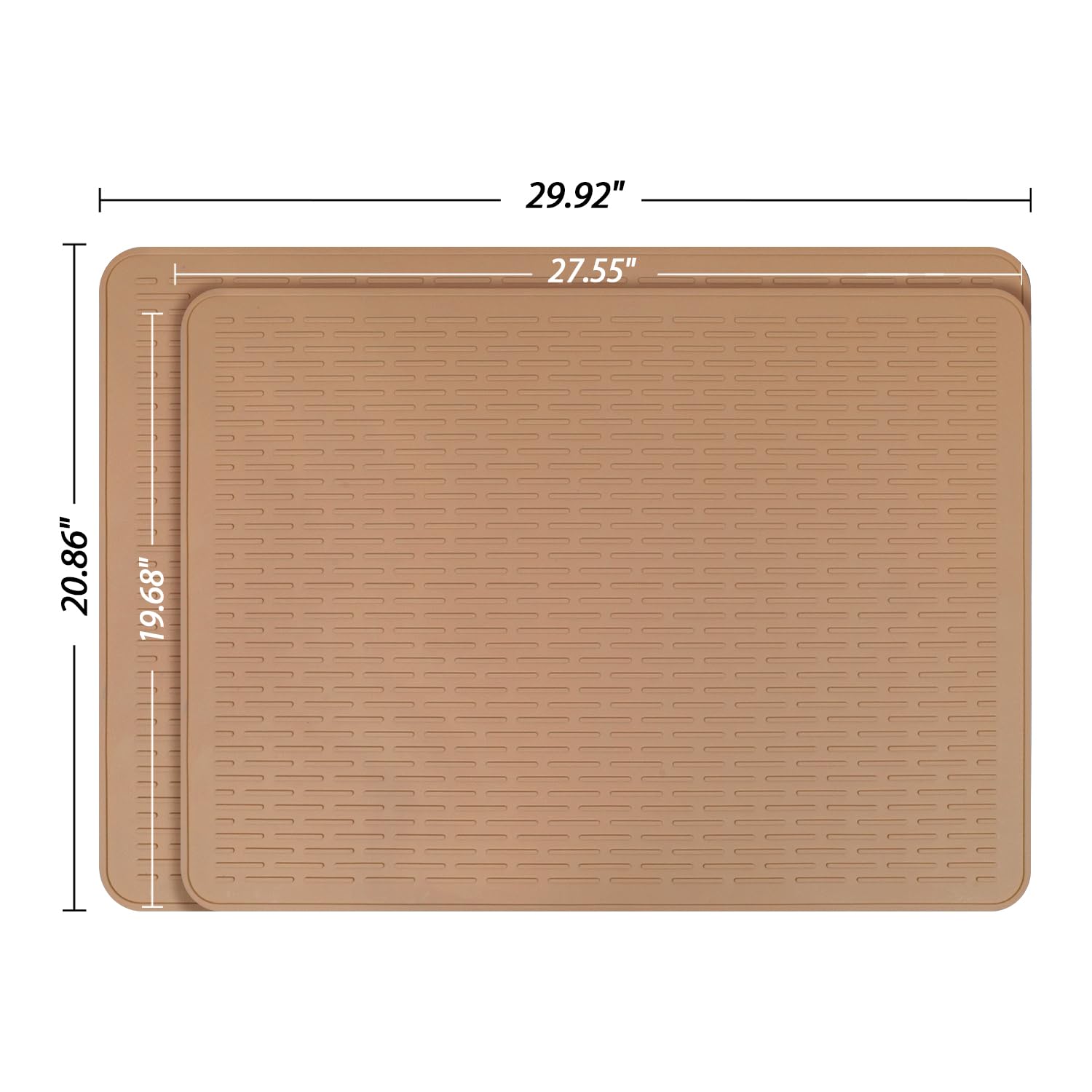 Kitchen Drying Mat:The unique design of wide raised line ridges increases air circulation, improves ventilation, and catches drips from dishes, glasses, fruits, and vegetables. The high edges and waterproof bottom keep the countertop dry and clean, making it an ideal kitchen drying mat.