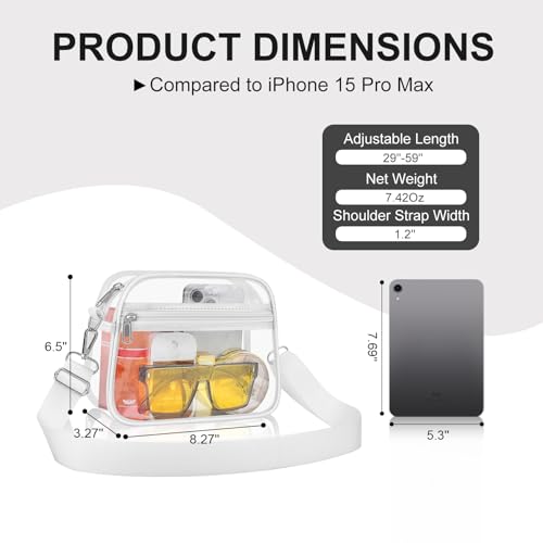 Stadium Approved Size:Perfect size for stadium events - 6.5" H x 8.27" L x 3.27" W, meets the clear bag policy of no larger than 12*12*6 inches, making it approved by stadiums,concerts, and sports events.