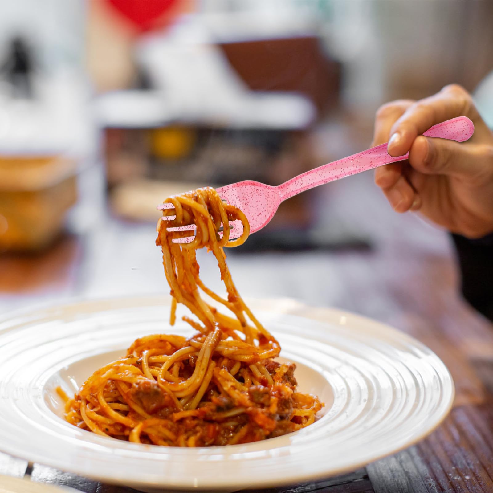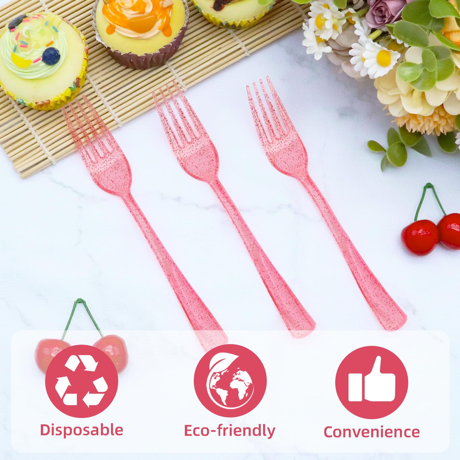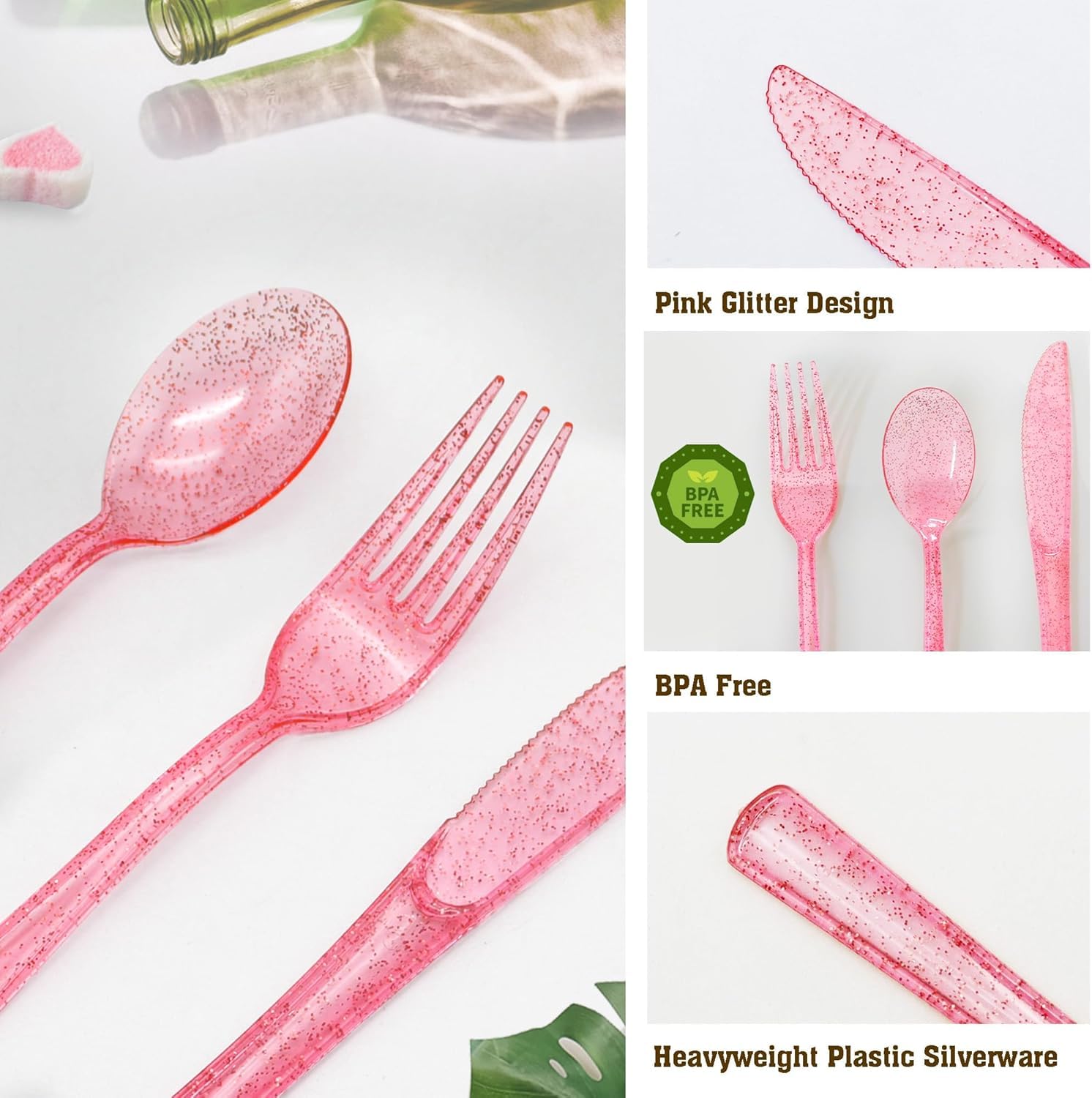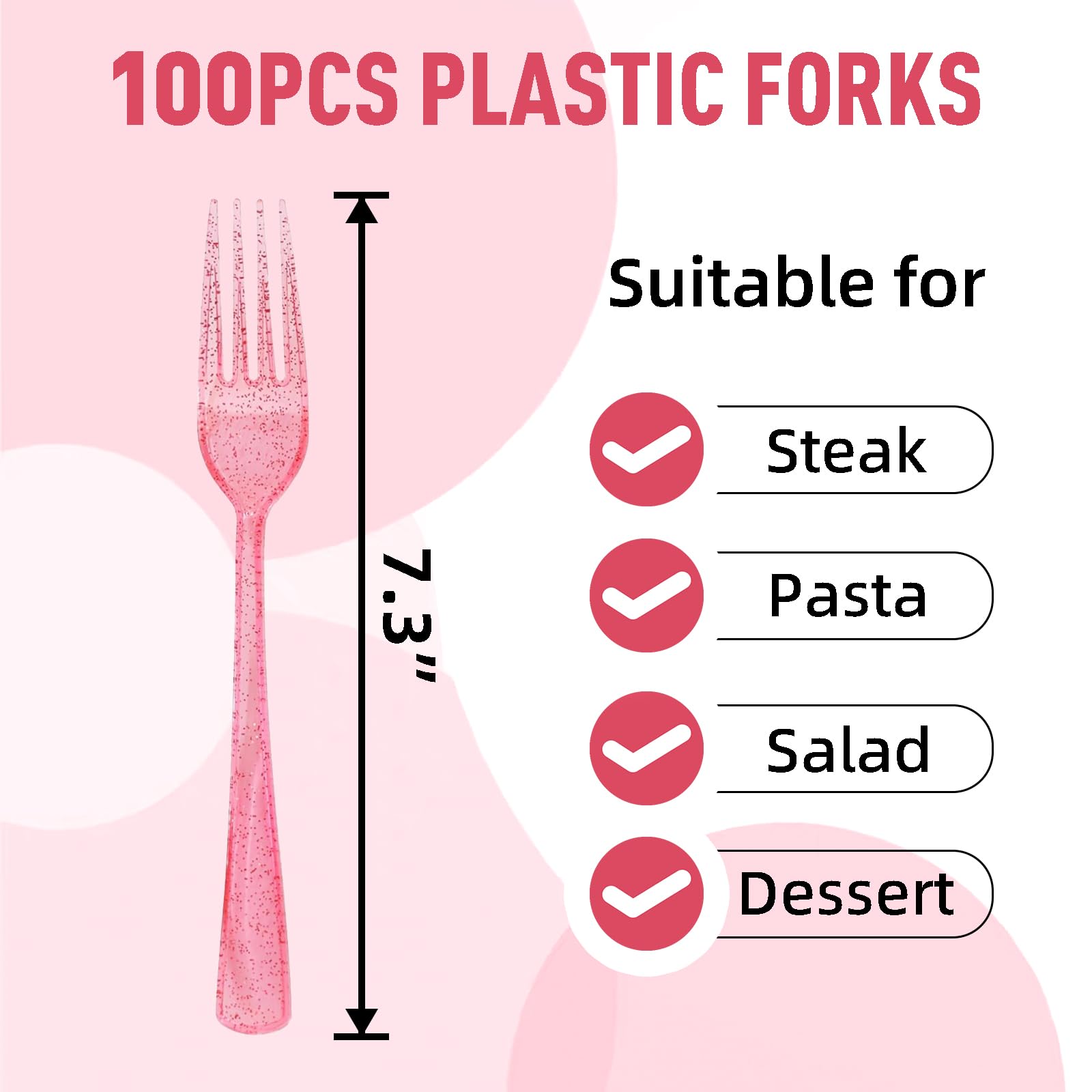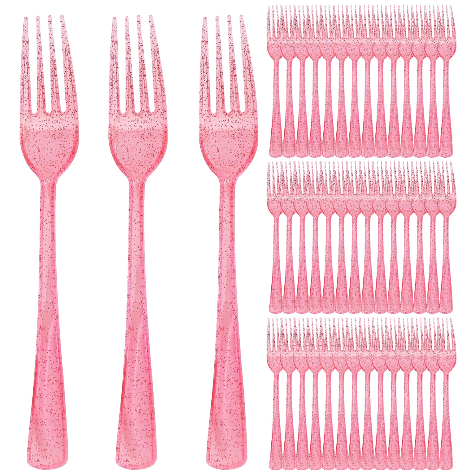 【Pink Forks for Party】: Pink is a warm and romantic color that can give a pleasant and comfortable feeling. The pink sparkling exterior design can add a bright and lively atmosphere to the table. Pink forks are not only practical tableware, but also stylish decorations that add a decorative touch to your table.