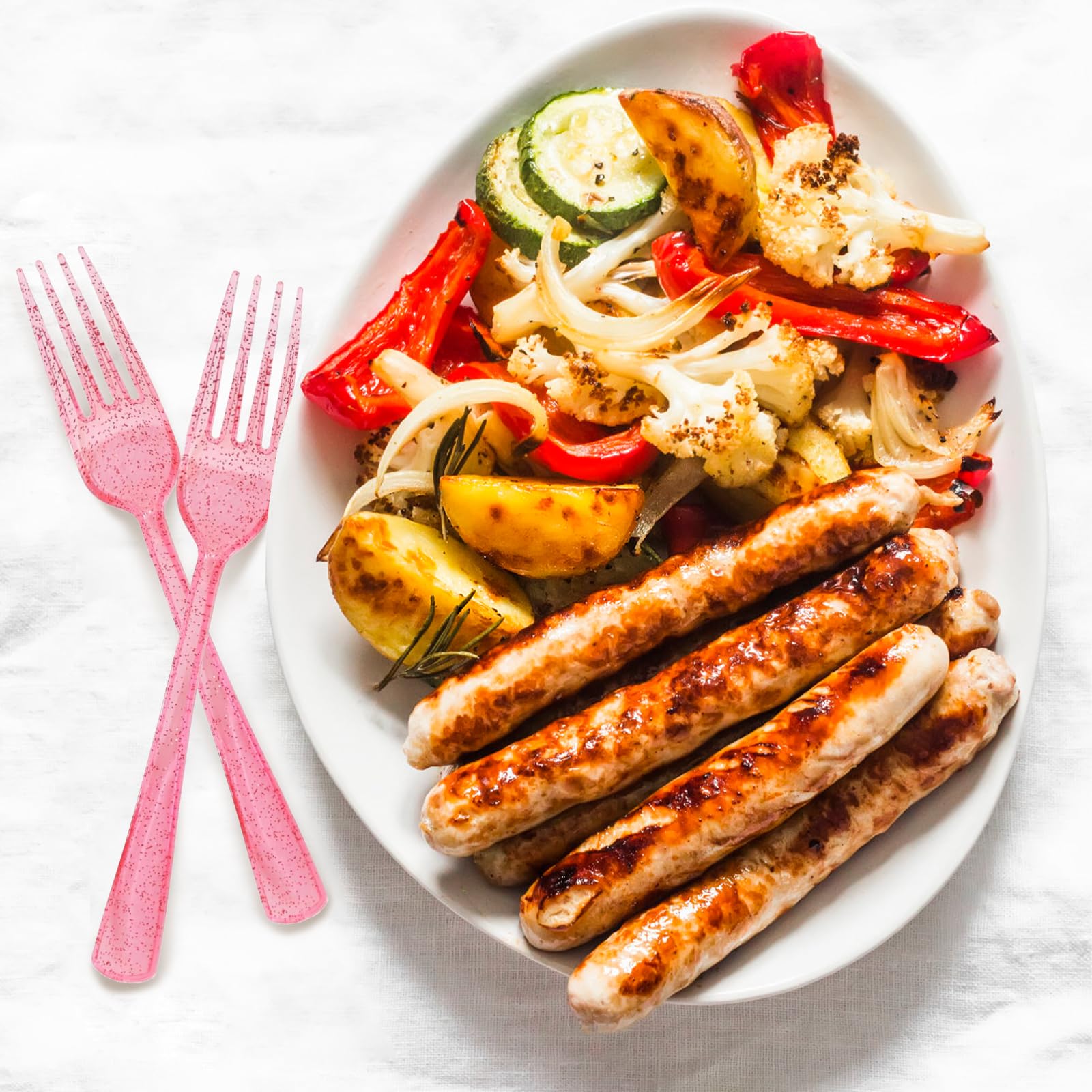 【Convenient and Reusable】The pink utensil set is disposable and can easily be thrown away after the party, eliminating the hassle of a long wash and clean-up so you can focus on having a great time with friends and family. Of course, if you want to continue using the pink plastic forks, simply wash it in soapy water to restore its lustre and get it ready for your next party.