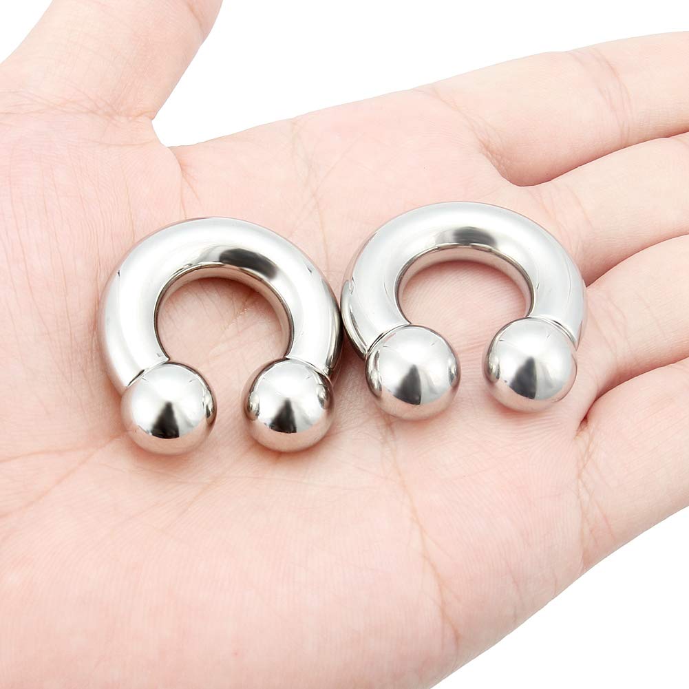 These Circular Horseshoe Barbells Hold the Ball in Place with Pressure From the Ring, Loaded Circular Horseshoe Barbells, Easy Pop Out, Large Gauges Often Require Ring Opening Pliers. Perfect for Nipple, Conch, Lip, Genital Prince Albert Piercing.