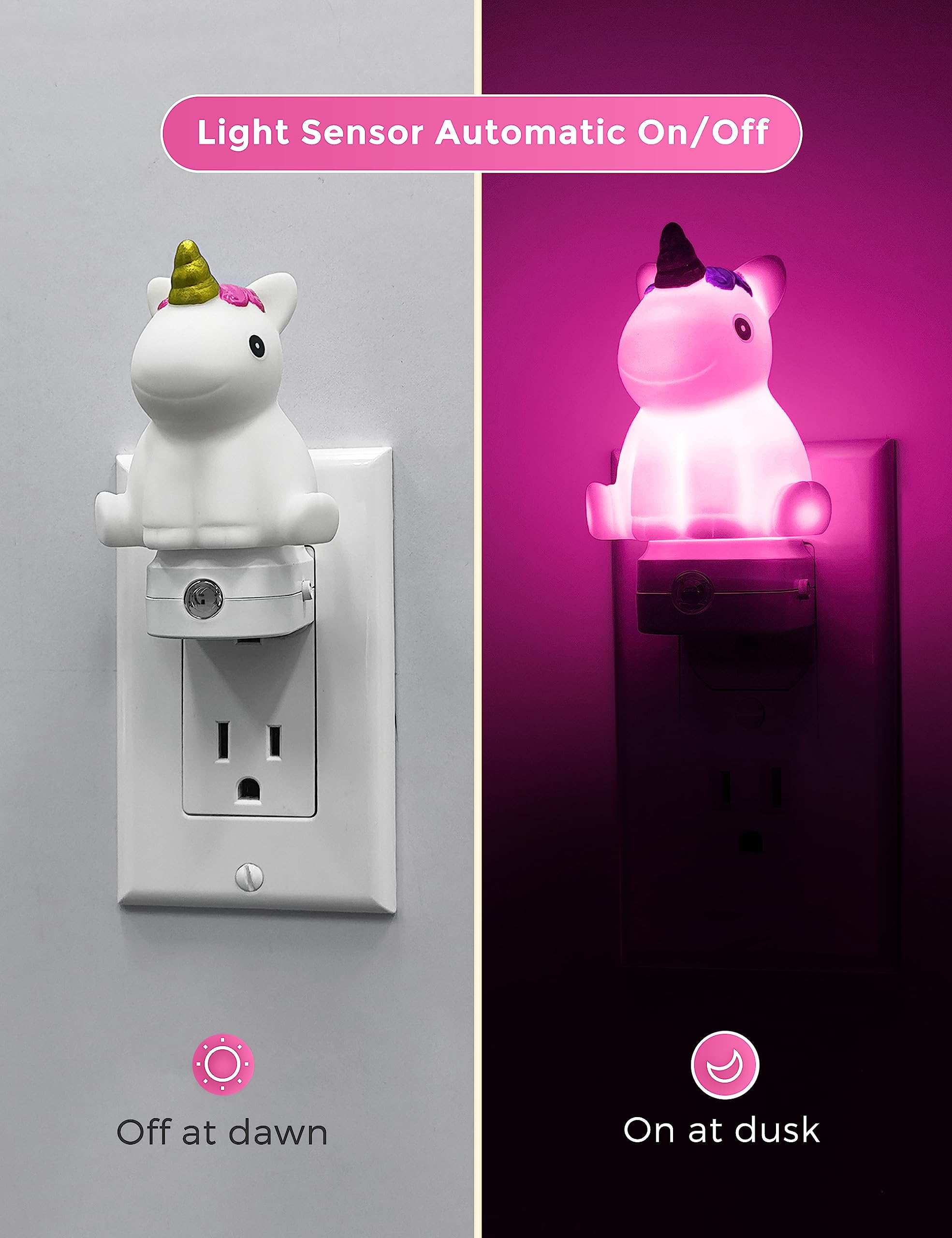 [Dusk to Dawn Night Light] With dusk to dawn photocell sensor, this color changing night light will auto on at dusk and auto off at dawn. Please do not put two night lights together, it will affect the light sensor function.