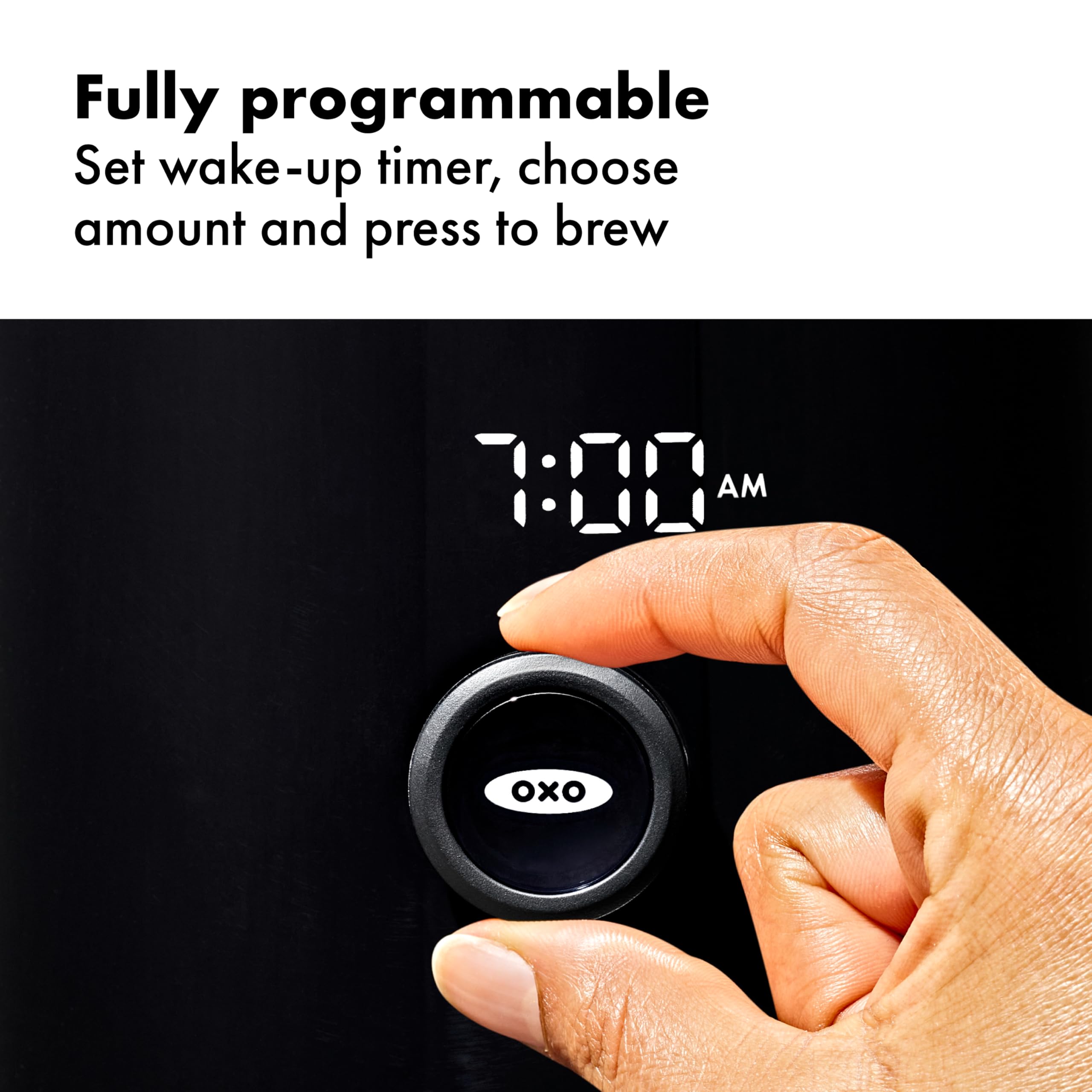 Fully Programmable: A single dial lets you choose cups, program the time and set the automatic wake-up timer.