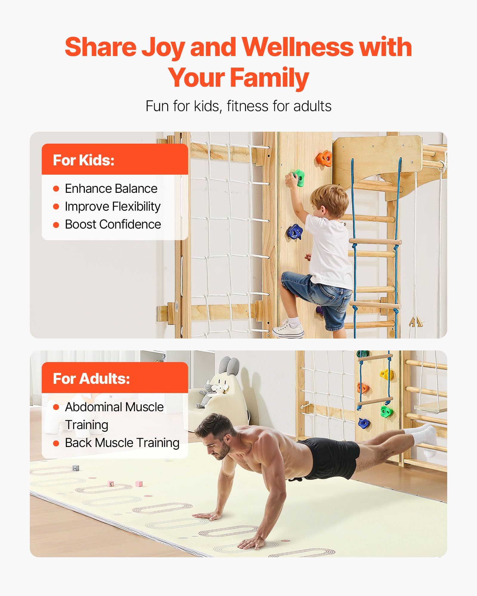 Strong Load Capacity: Built from solid pine wood, VEVOR Swedish wall ladder supports up to 220 lbs / 100 kg, providing stability for both children and adults. A great way to bring the whole family together for active fun