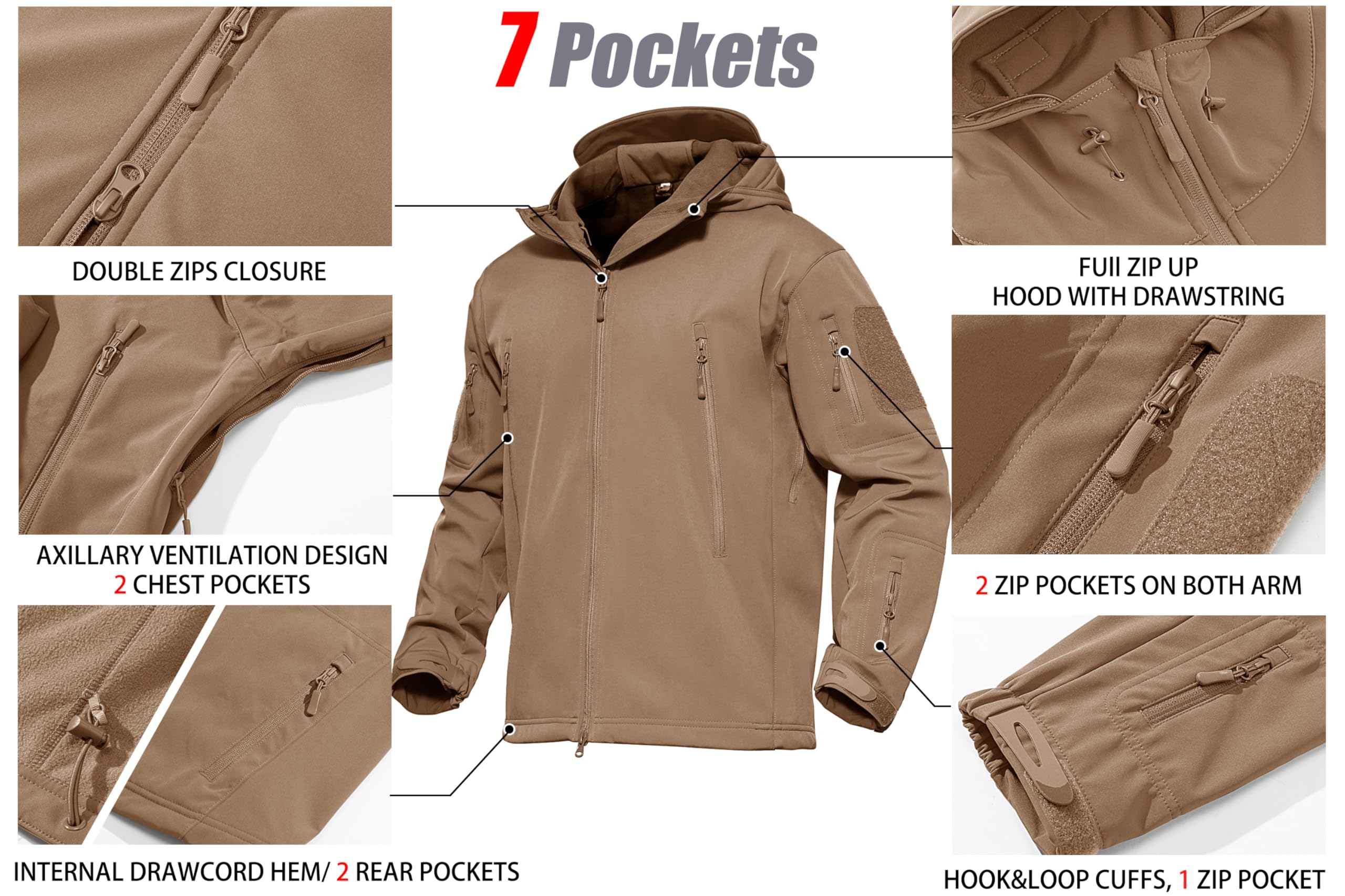 Men's tactical jacket with 7 pockets provide more portability. It can hold many tools to provide a convenience during your outdoor adventures.