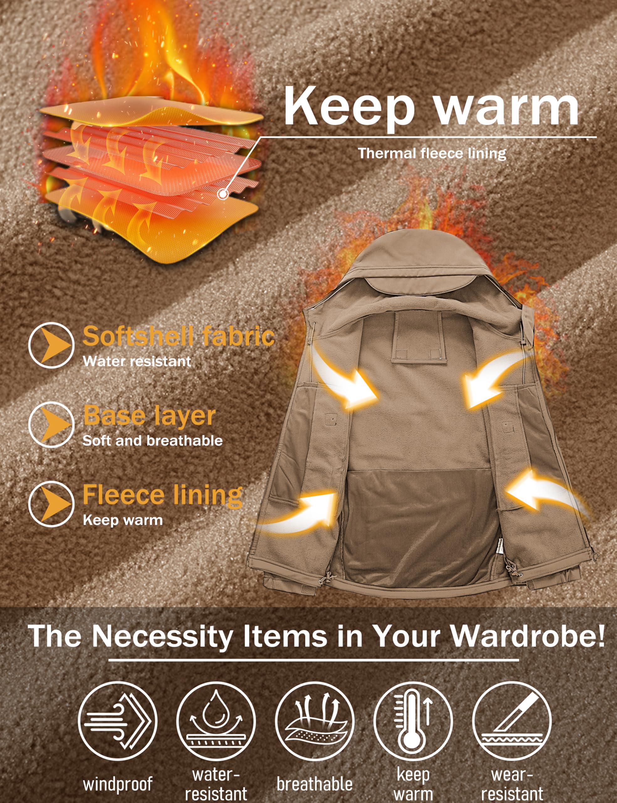The softshell fabric with warm inner micro fleece. The outer layer features waterproof and windproof, while the inner layer keeps you warm all day.