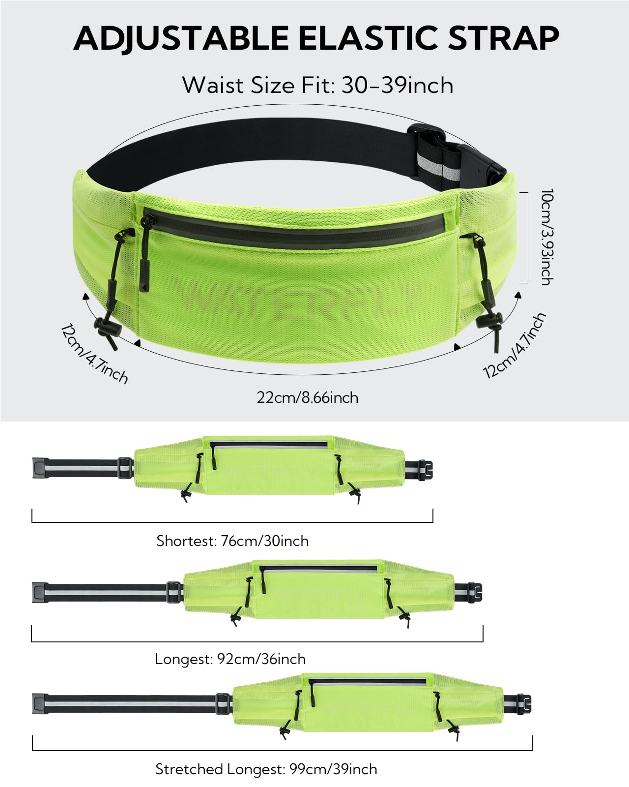Quick Adjustable Waist Strap: The 0.2 lb running pack features an elastic band that allows for quick length adjustments and fits waists from 30" to 39". The highly elastic, dense, and thick band provides a snug fit that reduces bounce, ensuring comfort during long runs