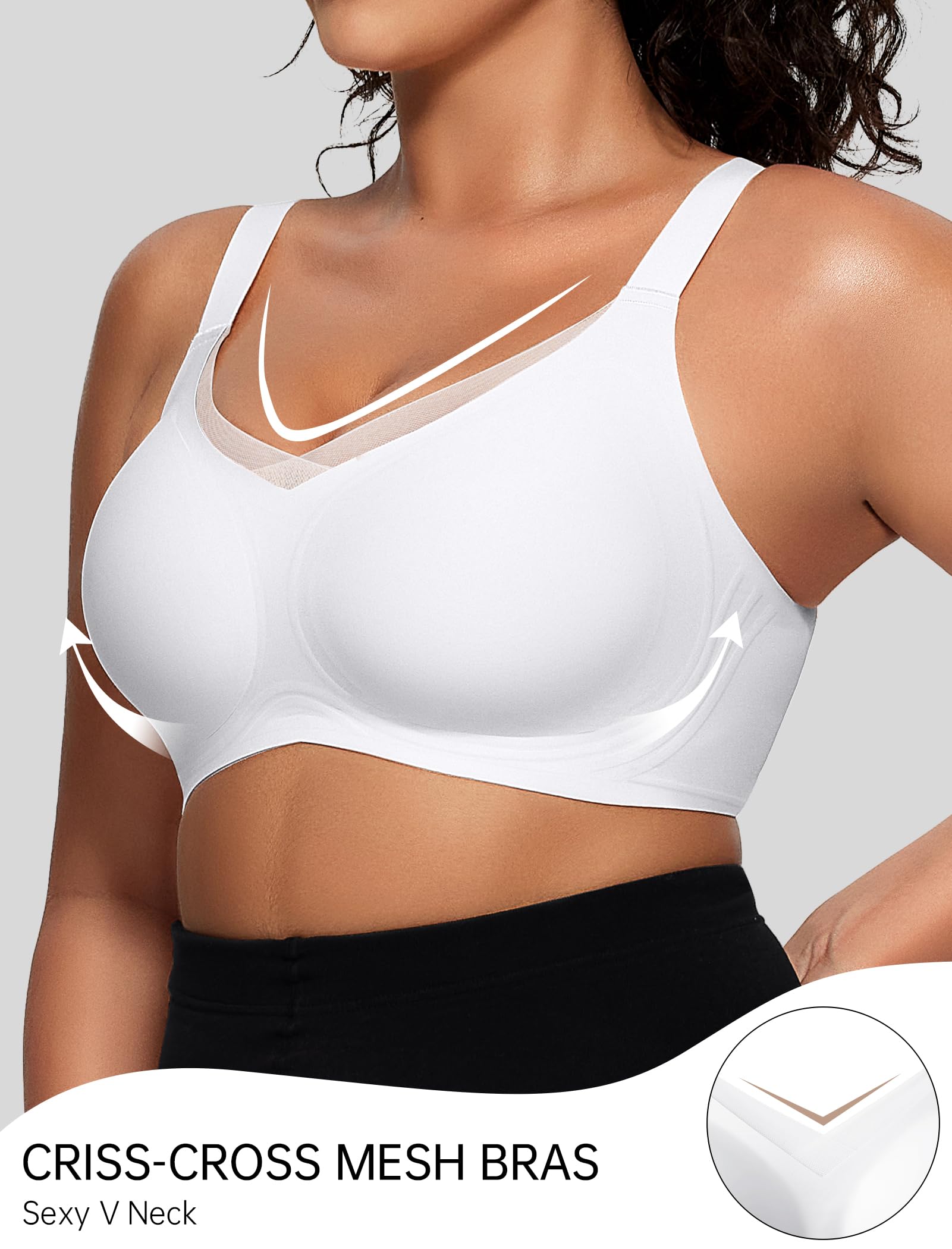 Sexy V Neck Bras for Women - The crossover bra is decorated with delicate criss-cross mesh detail which adds a touch of feminine elegance to the front side, making it truly flattering and charming in its aesthetic appeal. Our bras also have removable pads, so you can take them out to wear as a minimizer bra.