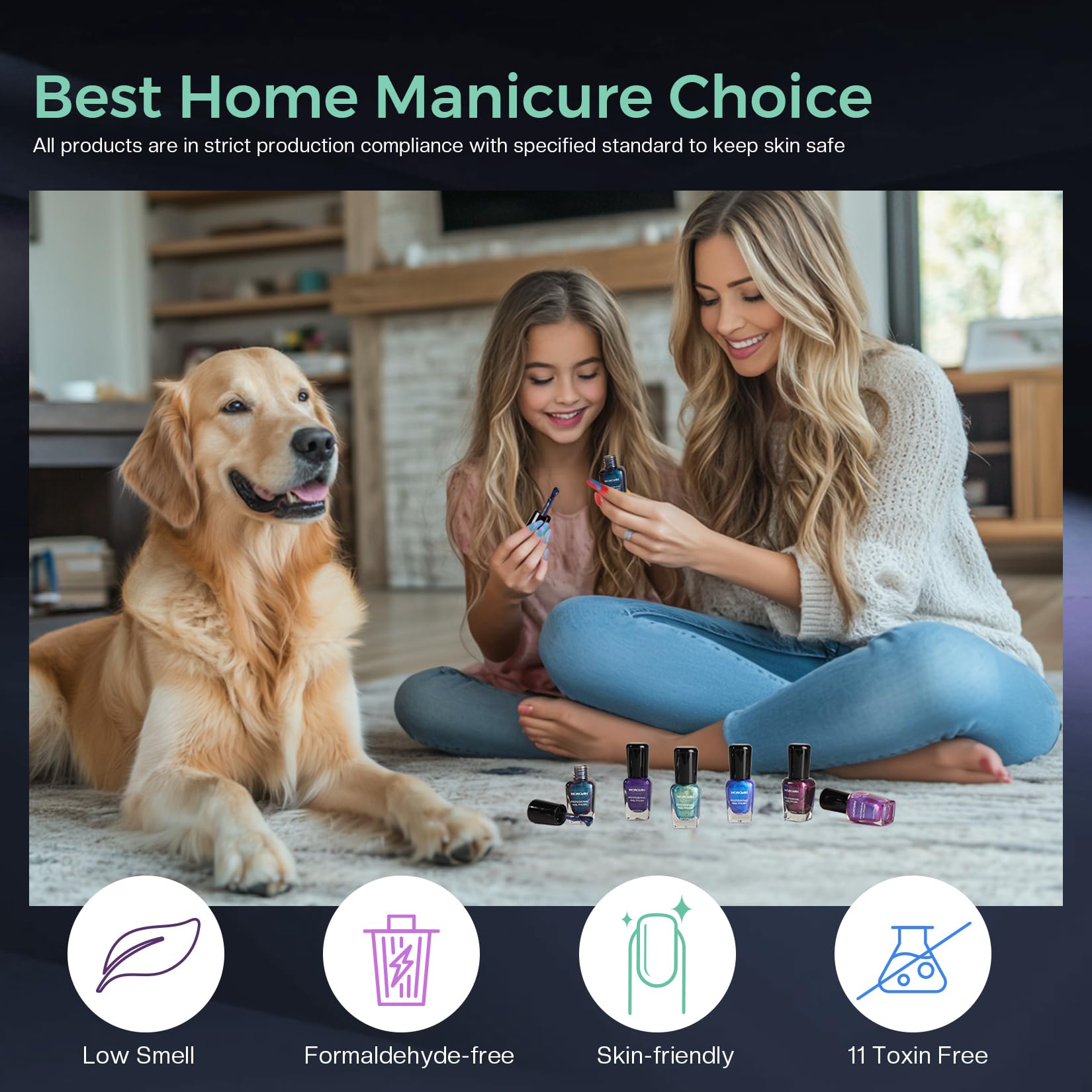 πHarmless & Gentle Formula: Glitter nail polish free from 11 harmful toxins, no formaldehyde or harsh adhesives, regular nail polish pack low odor and kind to skin, gentler on nails and safer for all ages.