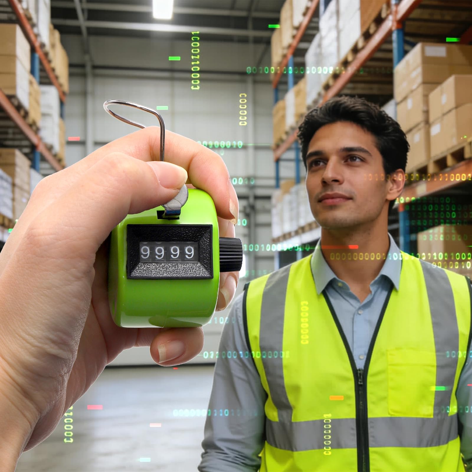 No batteries required and counts up to 9999 for enormous figure. Only takes a few turns to reset for easy and quick, no need to cycle through 9999. Simple to use and works as you expected.