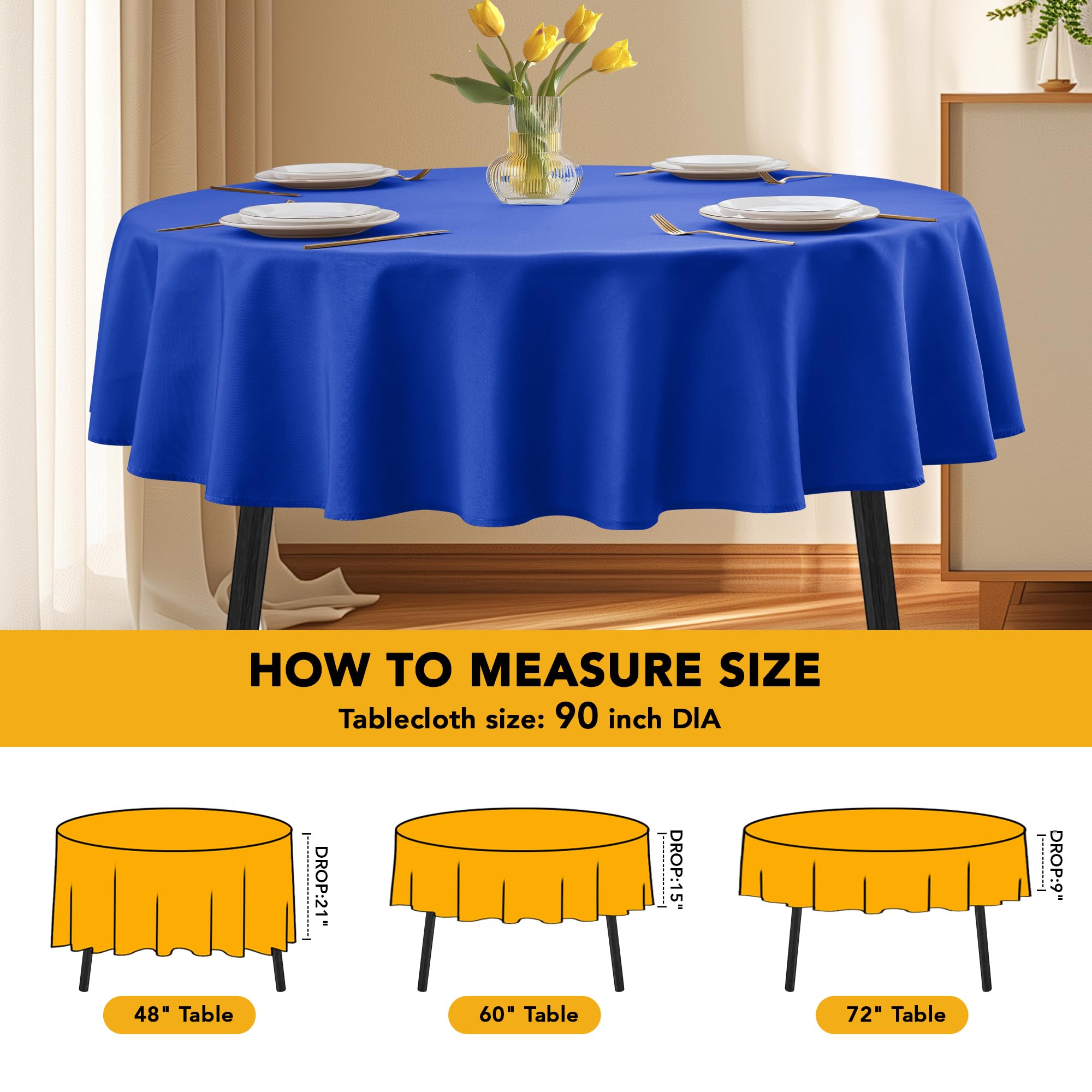 TAILORED FIT FOR 4-5 FT ROUND TABLES: Designed for 4-foot round tables, these 90-inch tablecloths fit up to 5 feet, offering a snug, no-slip drape for a polished setup