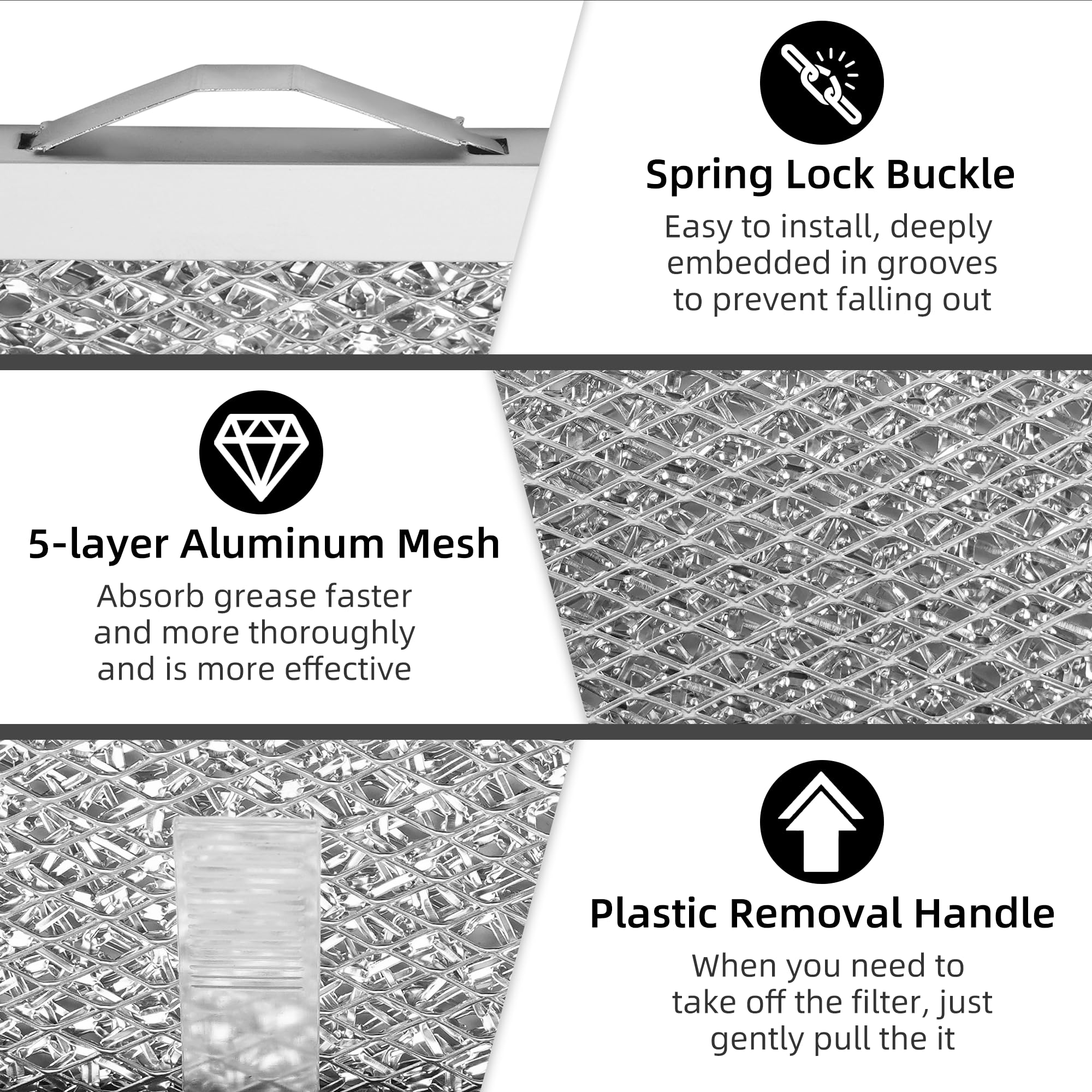 【Durable Materials】S99010430-002 Range Hood Grease Filter is made of high-quality multi-layer aluminum mesh and sturdy stainless steel construction. Ensure the grease filter is sturdy and not easy to bend and deform. Can withstand long-term use and frequent cleaning without being easily damaged