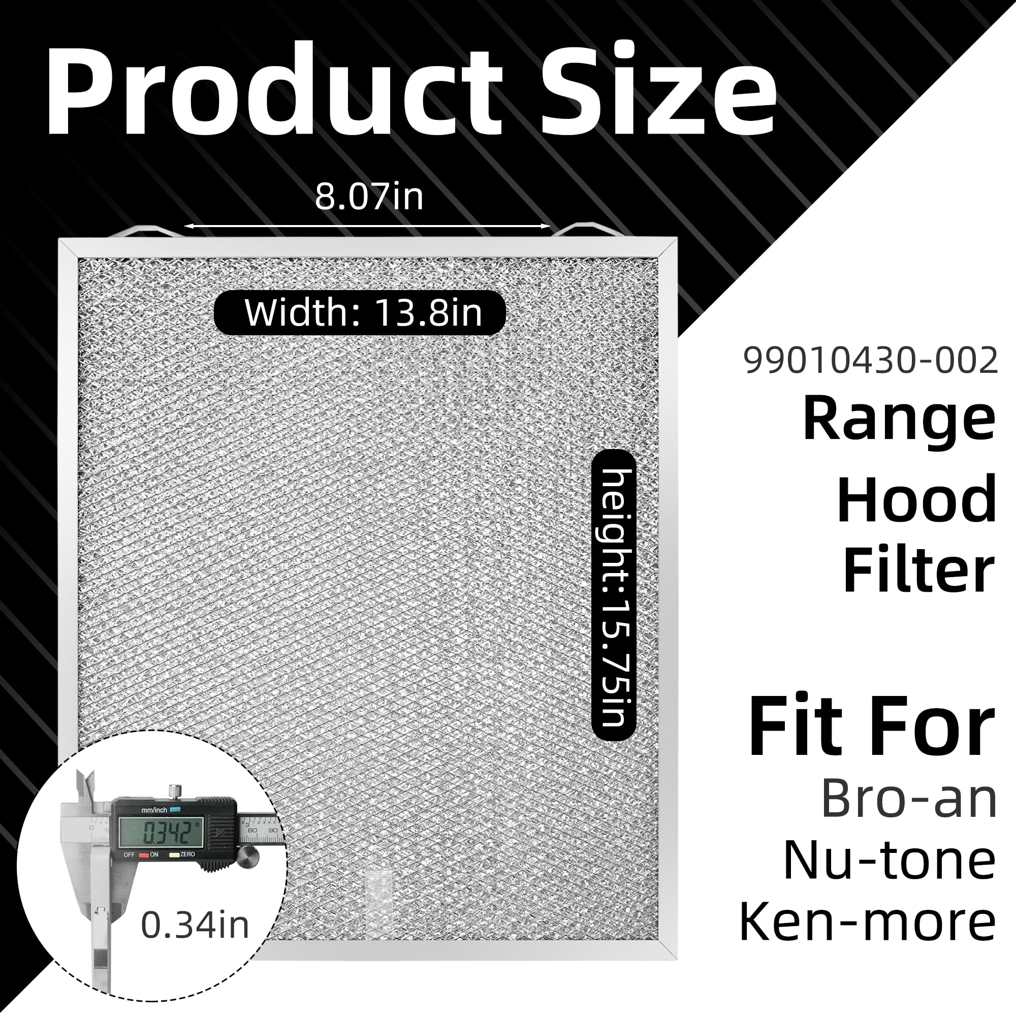 【Replacement Parts】99010430 Range Hood Filter replaces S99010430-002 99010430-002 4512880 aluminum mesh grease filter. Compatible with Br-oan Nu-tone range hood fiters BCSEK130WW BCSD130SS BCSD130BL BCSEK130BL BCSEK130SL BCSEK130SS CLSC230SS CLSC230SS ACSQ1 AVSF1-30in BCSD1-30in, Ken-more parts 23351264710 23351269710 23351269710 23351263710 23351262710 and More