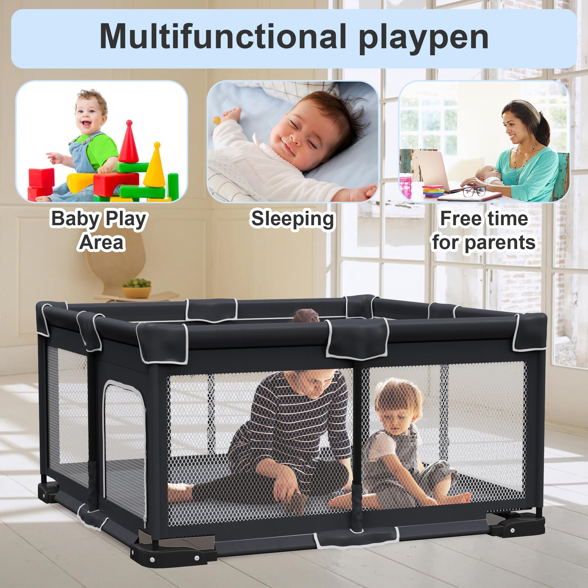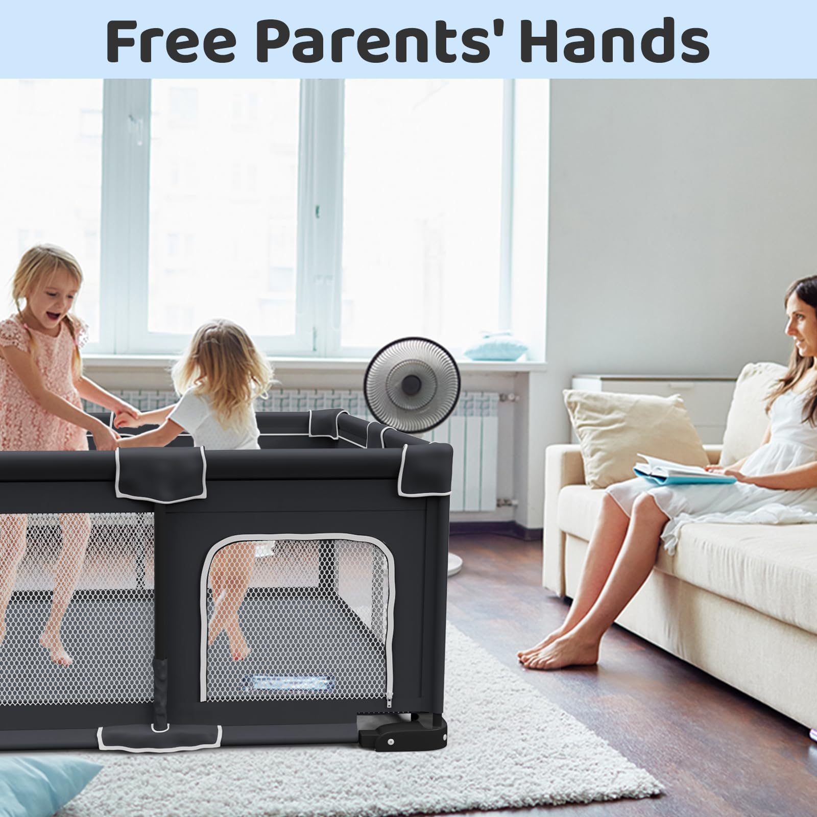 Robust Structure: The playpen is built with high-strength steel embedded within its framework, enhancing the stability of the structure and eliminating any possibility of shaking or collapsing. The size of the playpen's base has been increased, providing a larger contact area with the ground for improved slip resistance. It is suitable for various surfaces, including indoor carpets, tiles, outdoor lawns, and more.