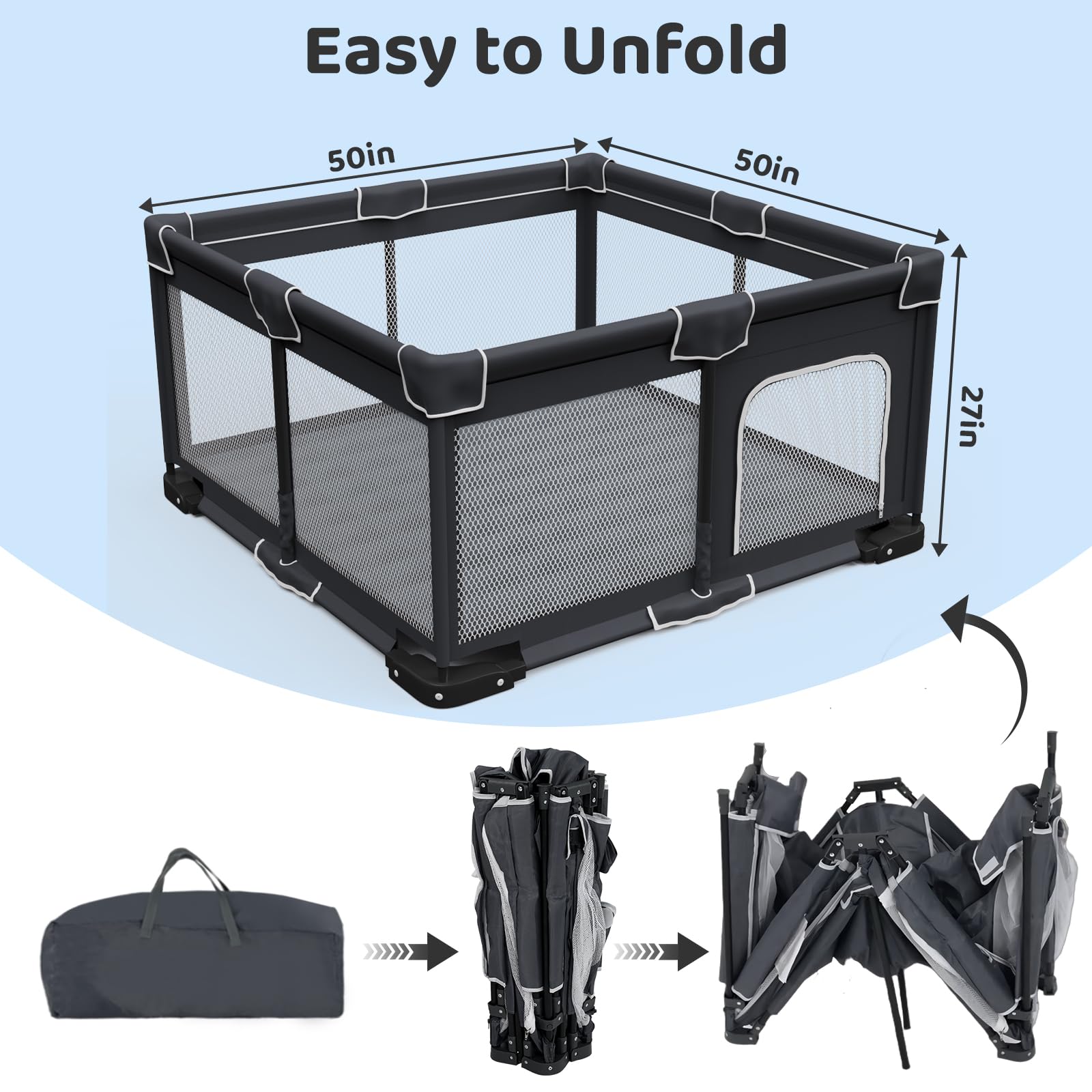 Easy to Unfold and Fold Baby Playpen: With Grobeybees foldable playpen, unfolding and folding the baby playpen takes only 1 minute, making it incredibly convenient for parents on-the-go. This feature allows for effortless setup and takedown, so you can spend less time worrying about assembly and more time enjoying quality time with your little one.