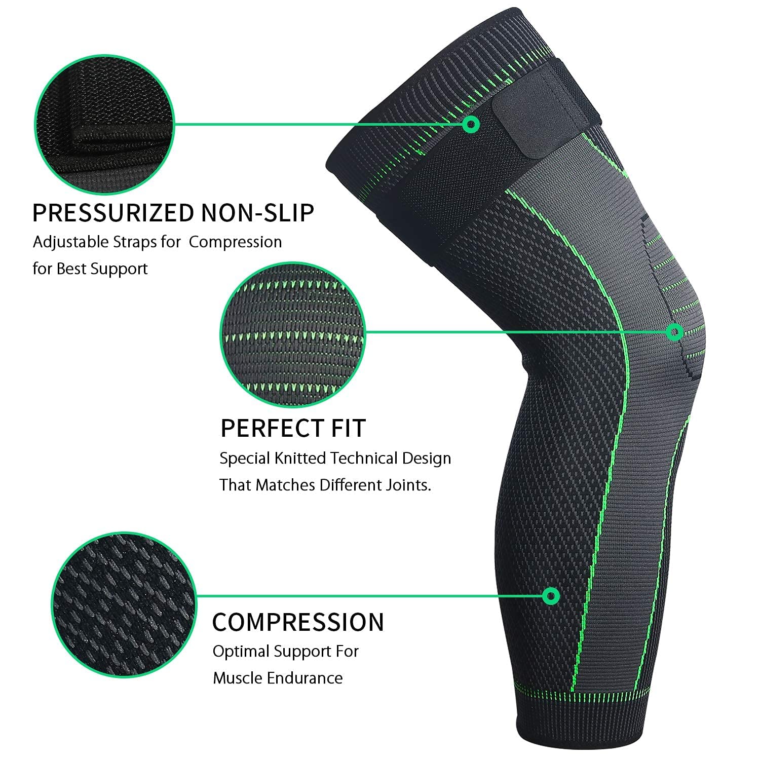 Package Included:1 Pair Size: M: 33-38 CM 13-15 IN L: 37-42 CM 14.5-16.5 IN XL: 41-46 CM 16.1-18.1 IN 2XL: 45-51 CM 17.7-20 IN 3XL: 50-56 CM 19.7-22 IN 4XL: 55-60 CM 21.6-23.6 IN Machine Washable in cold water and hang to dry When you wear our full leg sleeve, Increase blood flow and circulation throughout knees,thigh and foot. Help your muscles recover faster from weight training and general soreness. Provide mild pain relief from over-use, bursitis & tendonitis. Treat lymphedeama and help improve blood flow. Shield yourself from harmful UV rays without using greasy lotions. Easily regulate body temperature with these easy on-easy off comfy sleeves. Wear as a base layer for added comfort as knee warmers. Stay dry & cool when sweating with this wick away knit. You can use our leg sleeve,when you are doing Basketball,Baseball,Obstacle course runs Savage,Drive,Cycling,Football,Golf,Skiing Skating,Weight Lifting,Boxing & MMA,Hiking .