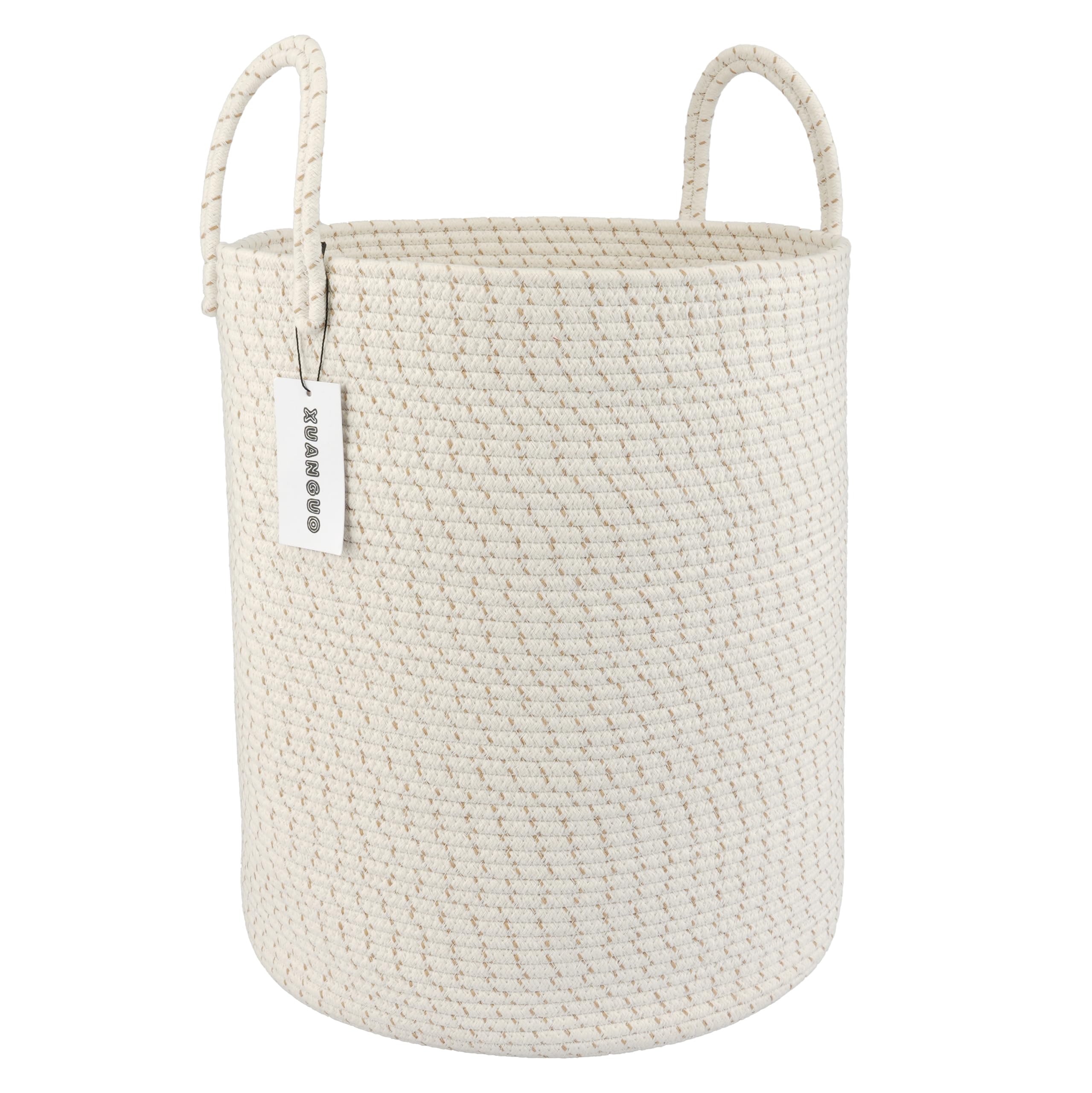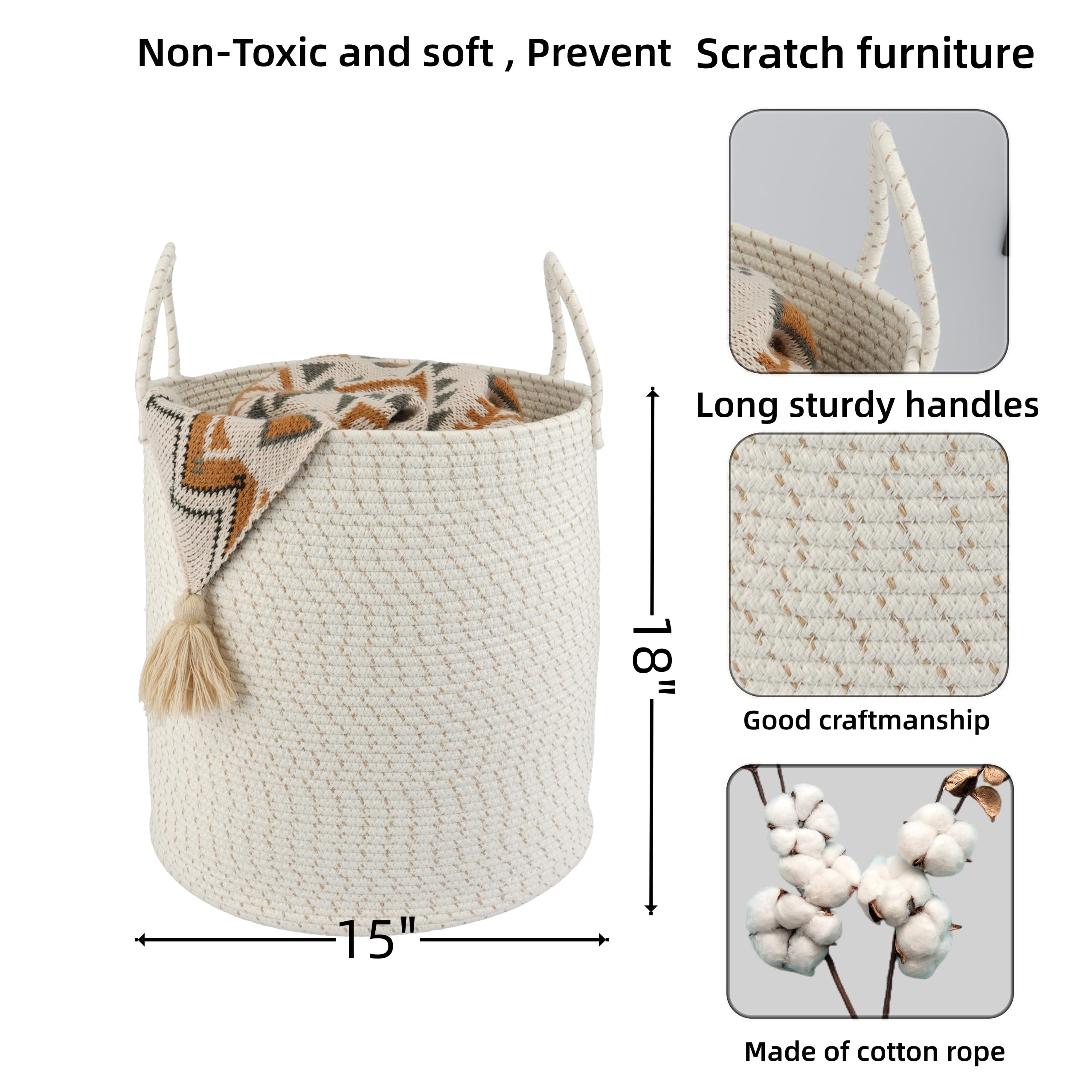 Tall storage basket with handles: This cute tall round rope basket is designed with long and sturdy handles, making it easy to move around. As the clothes storage basket is made of soft cotton rope, it has no sharp edges and will not scratch your furniture or floor.