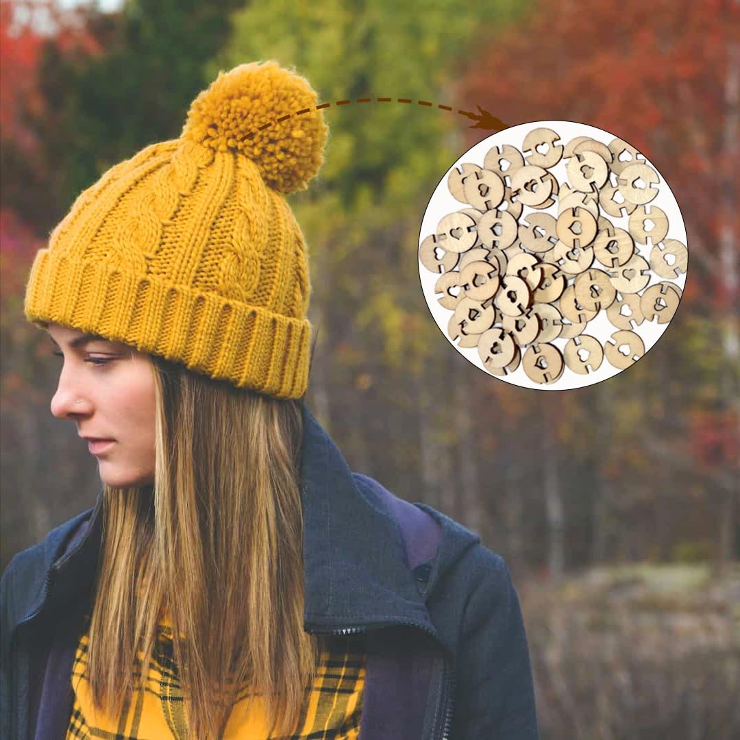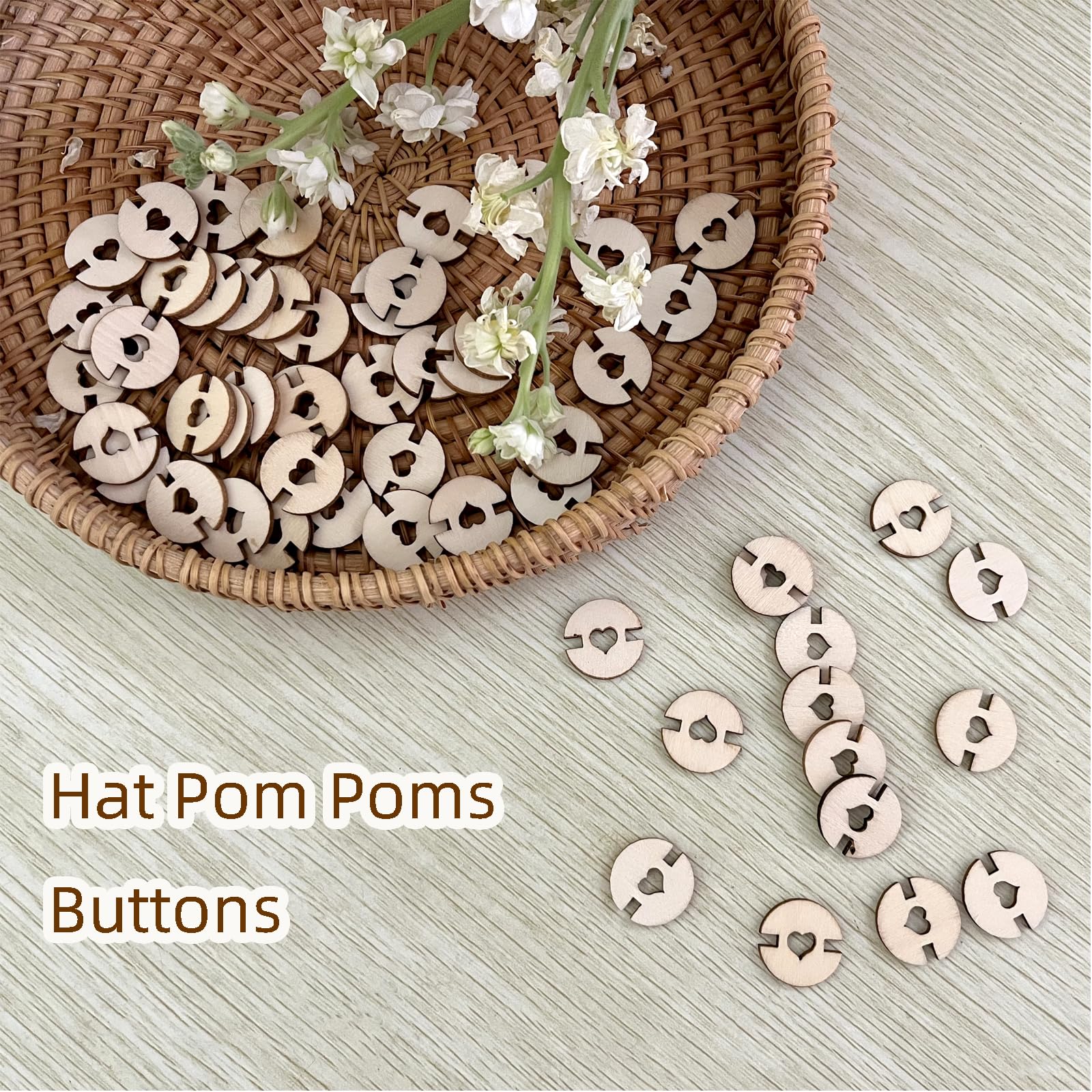 60pcs Pom Poms Buttons for Hats, 20mm Wooden Handmade Buttons Removable Love Button Faux Fur Pom Pom Holder Keepers Fastener for Knitting Beanies Caps DIY Craft Decoration
