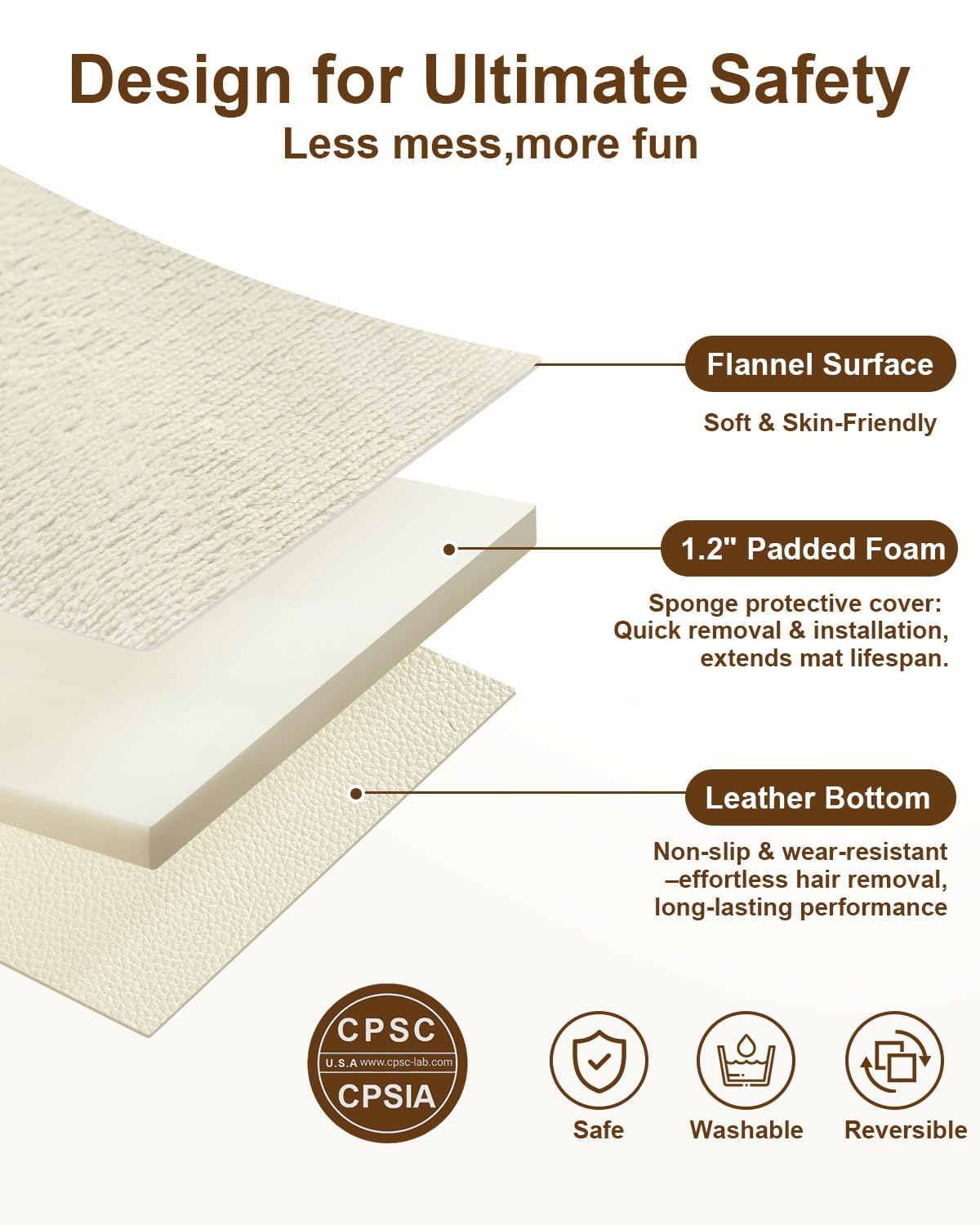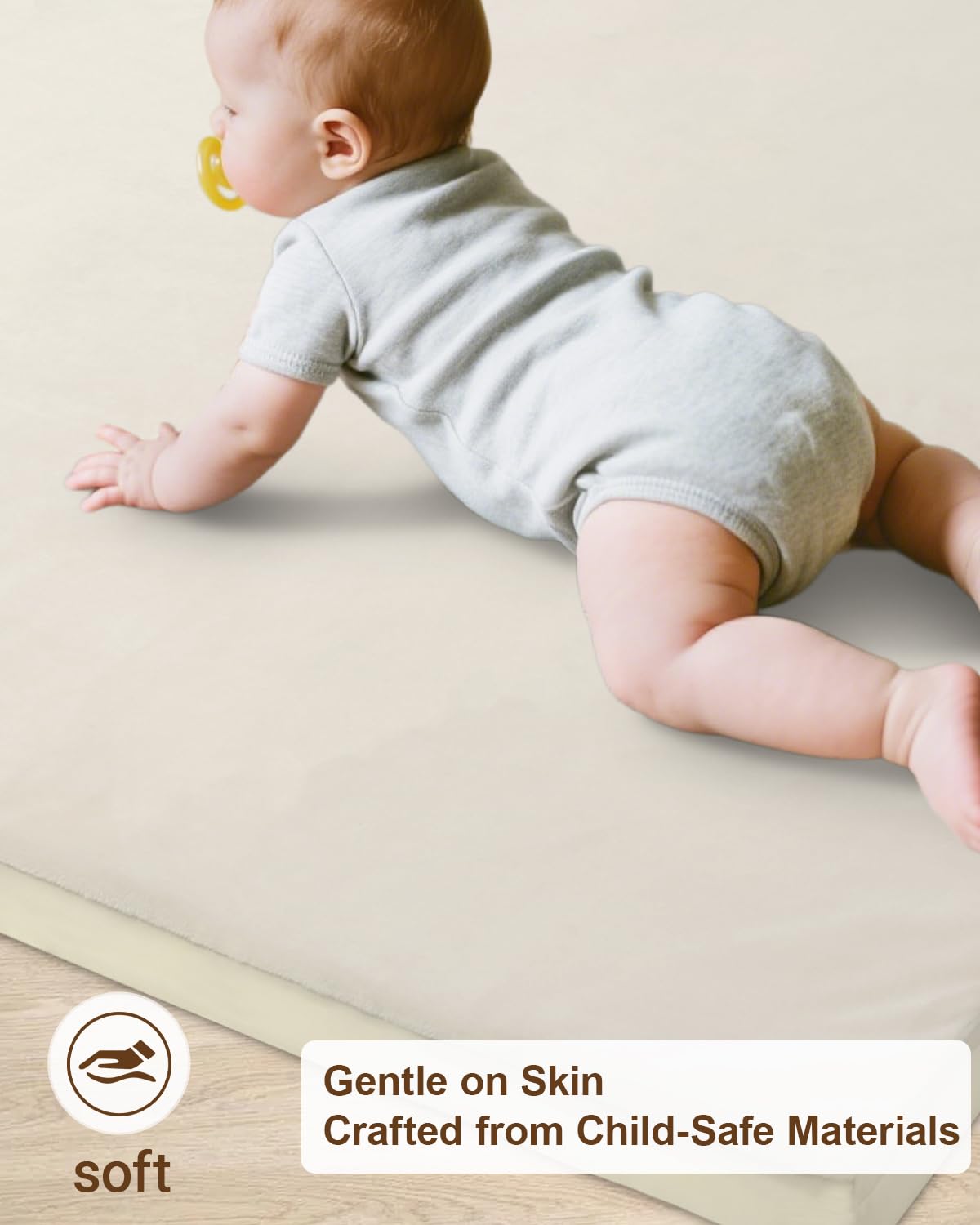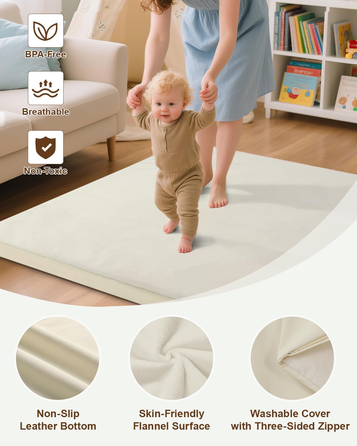Super Soft Flannel Fabric, Non Slip Vegan Leather, Comfortable and Safe: The top of the mat is made of soft and thick flannel fabric, together with the thick foam, which brings you and your child a comfy and comfortable experience like a cloud, and will not bring a cold touch like the contact surface of leather. The bottom is made of vegan leather, which is friction-resistant and non-slip, you don't have to worry about your child slipping on it.