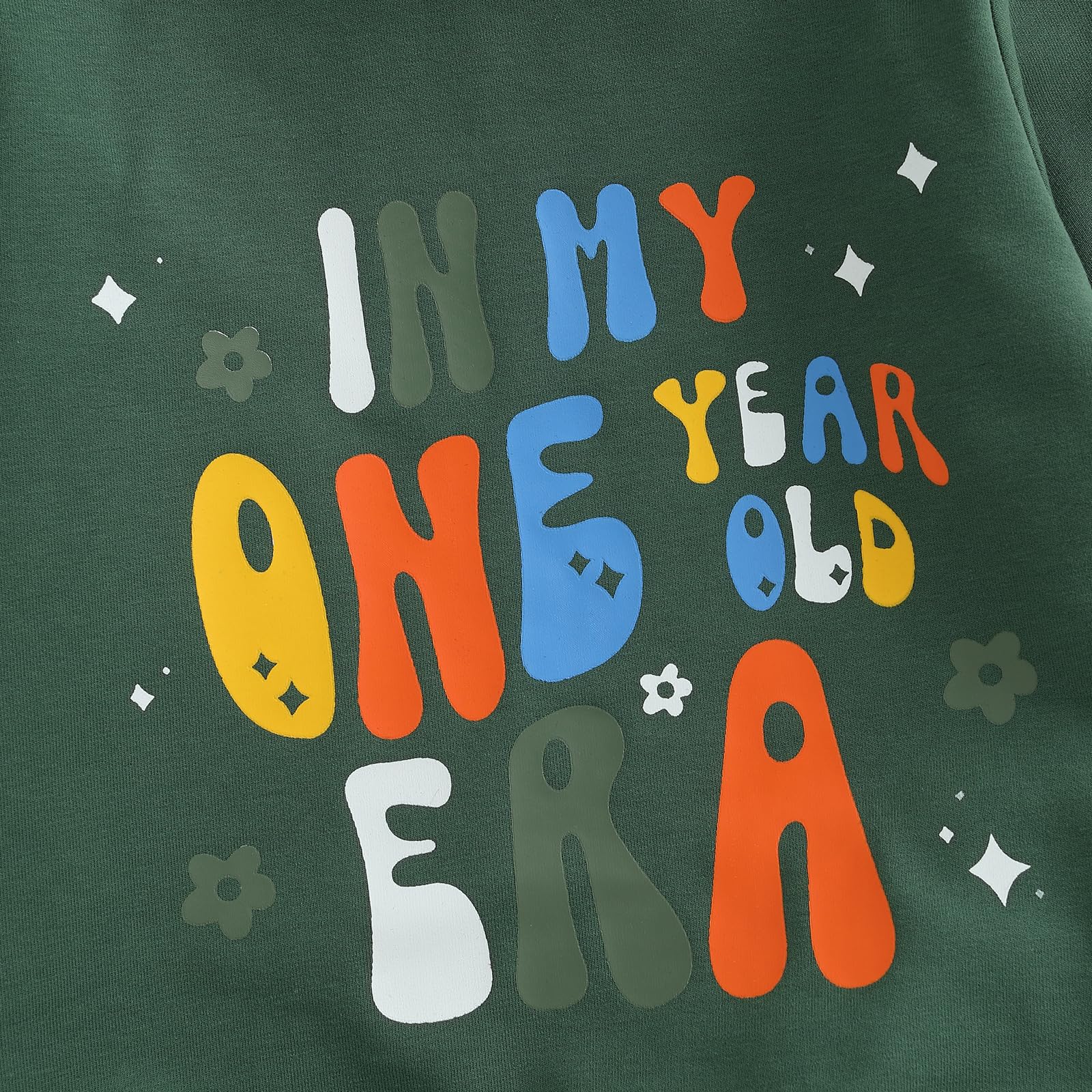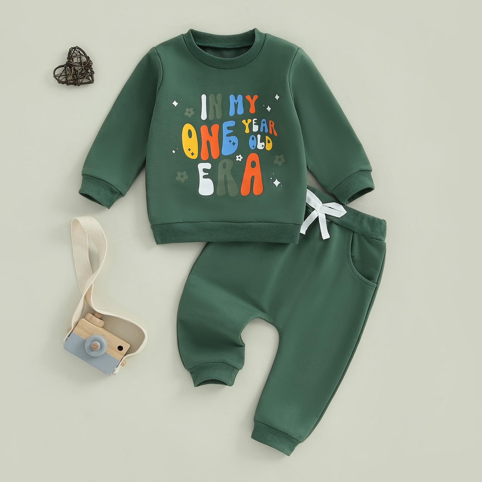 Design: Baby girl first birthday outfit, long sleeve, crewneck, in my one year old era print, 1st birthday sweatshirt, matching with elastic waist solid pants, very cute and trendy sweatsuit for spring,fall and winter, 1st birthday gifts girl, girls first birthday outfit