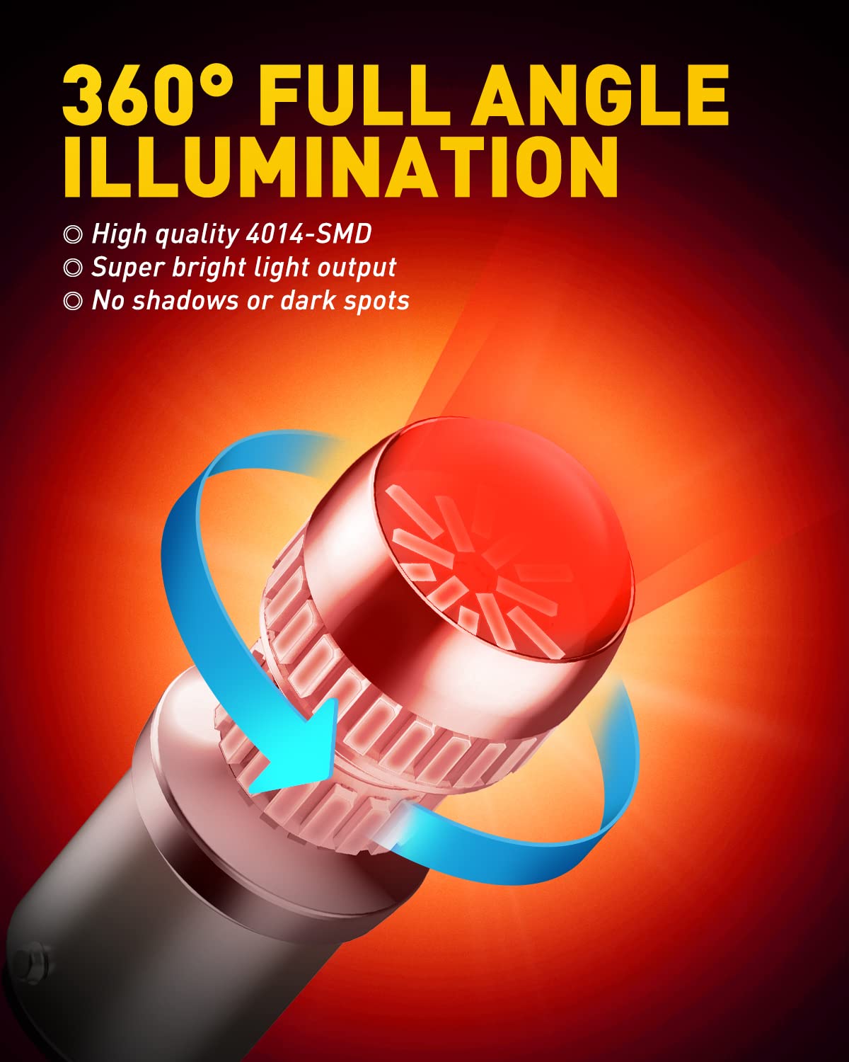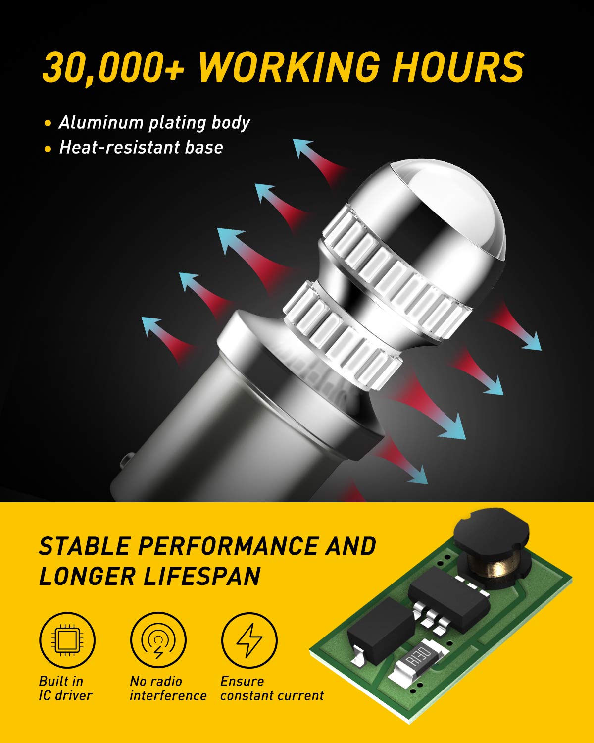 Low power and high brightness. 5.5W per 1157 led red bulb. Only 1/4 energy consumption of original 1157 red bulb but 4 times brighter. Built in smart IC driver ensure constant current, no radio interference. Plus instant-on capability with zero warm-up time