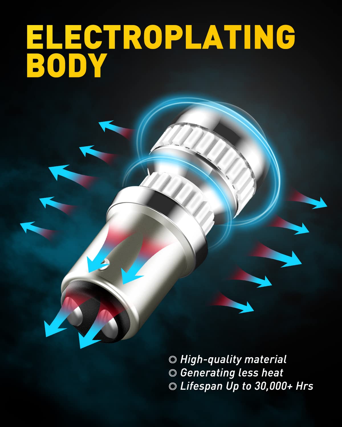 Electroplating process housing. Improves oxidation resistance and produces less heat. High-end styling, matching great in the assembly. Ideal replacement for your halogen 2357 red bulbs