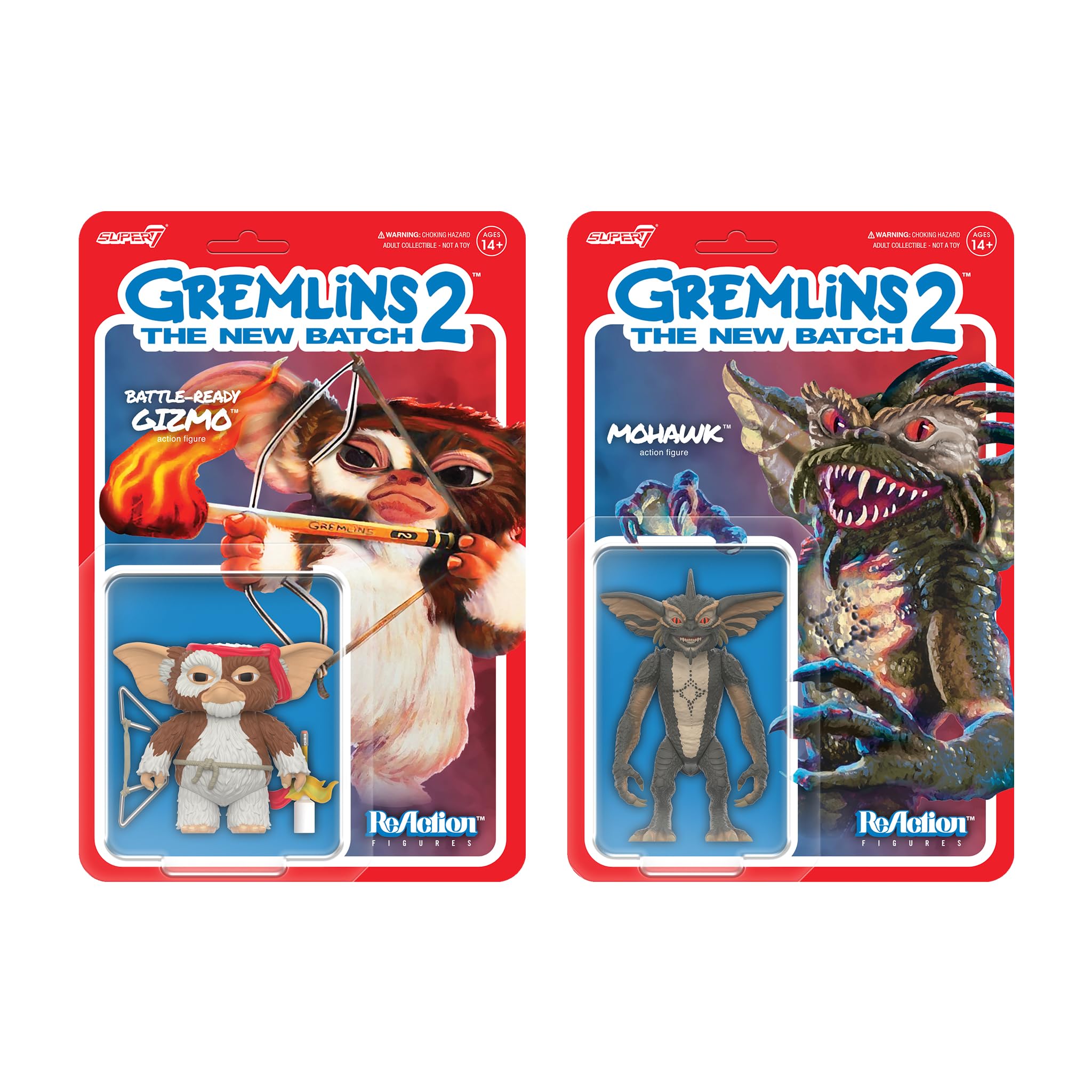 Uh-oh! When it comes to chaos and mayhem, no Gremlin is more devious than Mohawk. Super7 is bringing this troublemaker to life with the new Mohawk ReAction figure, inspired by the 1990 film Gremlins 2: The New Batch. With film-accurate paint and sculpt details, this 3.75” scale, articulated Mohawk ReAction figure is ready to stir up trouble in your collection. Packaged on a full color blistered cardback, it's a perfect addition to any Gremlins fan's shelf—just be sure to keep an eye on him! Super7 makes retro collectibles, vintage toys, and nostalgia gifts for pop culture fanatics and collectors. We grew up with giant monsters, comic books, punk, science fiction, skateboarding, robots, and rebellion. No one made what we wanted. So we made it ourselves.