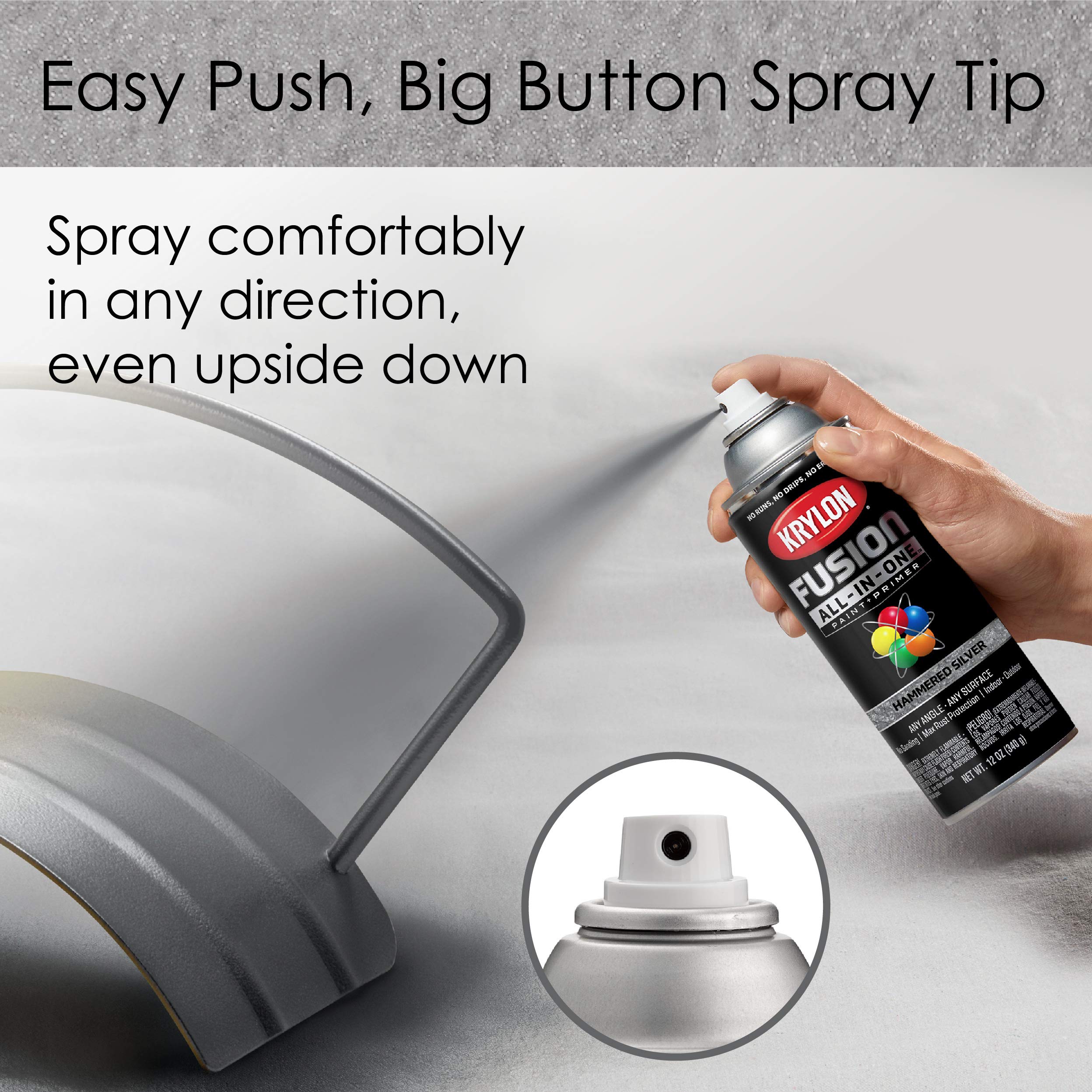 HAMMERED FINISH SPRAY PAINT – Krylon All-In-One Hammered Finish Spray Paint delivers best in class adhesion, durability, and rust protection. The aerosol spray paint offers a broad color palette with multiple finishes and sheens for indoors and out.