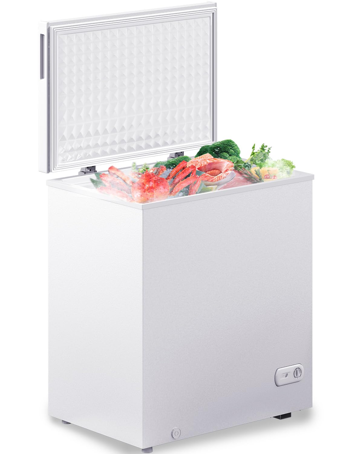 【Compact but Large Capacity】All functions of our chest freezer are designed so compact (21.7 x 27.6 x 33.5 inches). Our 10.0 cubic foot compact freezer is designed to save a lot of food in the kitchen. It can be used to preserve seafood, ice cream, meat, etc.