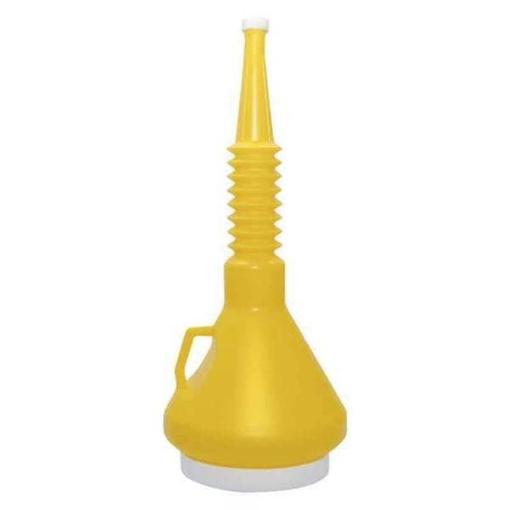 Funnels have dirt- and dust-resistant caps with a polypropylene cap for both the funnel and the spout. Caps eliminate spills and contaminants.