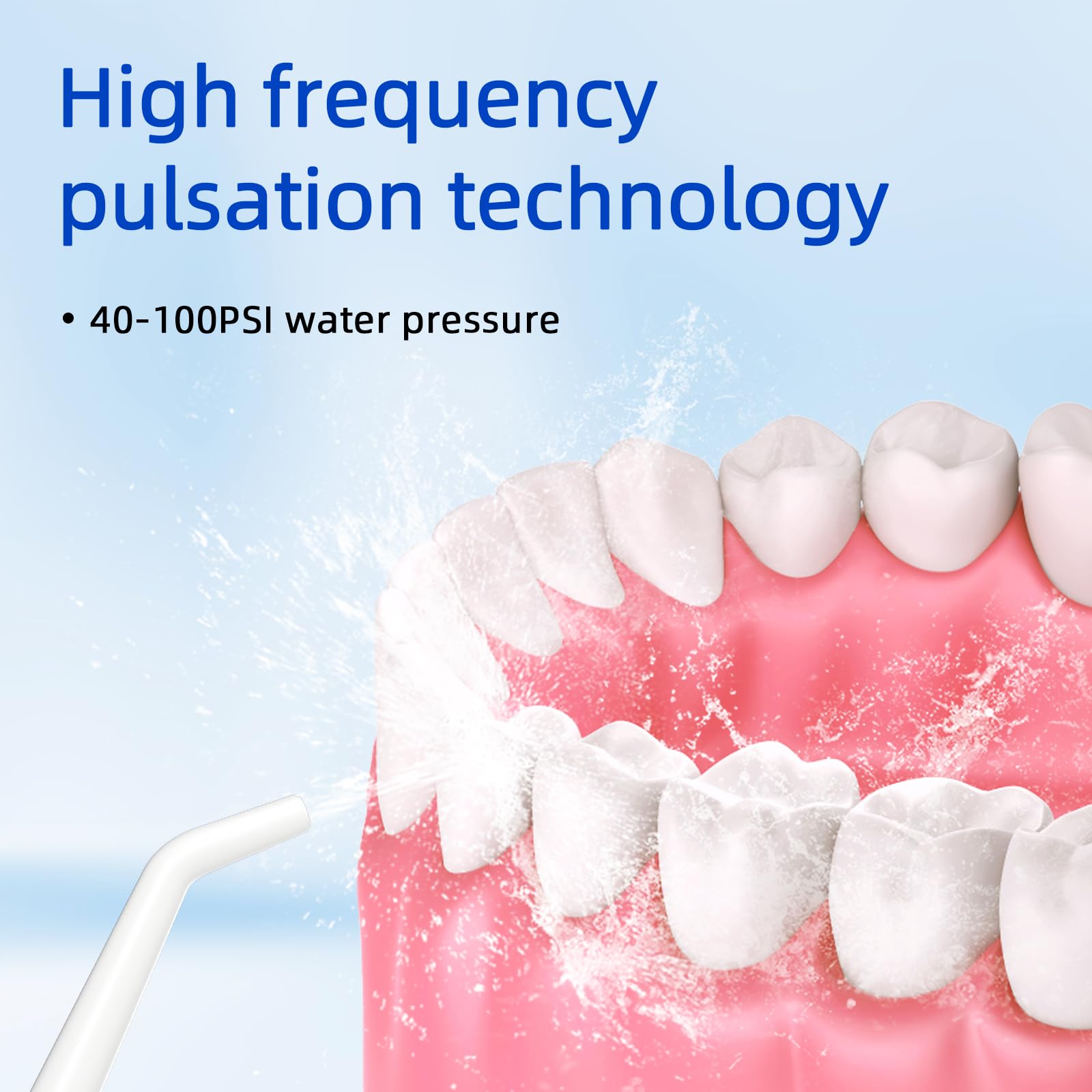 【Deeply Clean Teeth and Improve Gum Health】With unique pulsation technique, ToFlow water dental flosser can offer high pressure water pulse 1300-1500 times/min, 40-120 PSI strong water pressure to clean oral hygiene deeply and protect teeth effectively