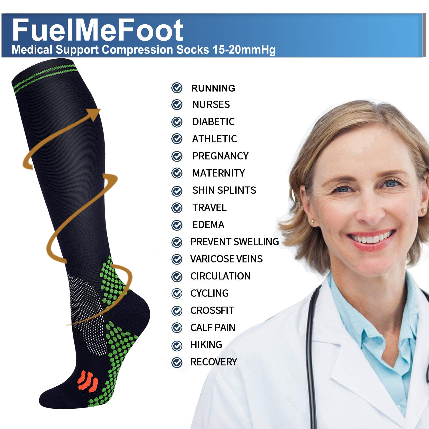 ✅COMPRESSION SOCKS - Say goodbye to your pain!The compression technique is scientifically known to reduce swelling, pain by enhancing blood circulation.At times, Compression socks are viewed as medicinal products.We intend allay this myth by combining fashion, technology and science to bring you the triple comfort.Our compression socks' delivering 360-degree stretch for greater flexibility and durability. Ideal for those who sit for long period during travel or at work.