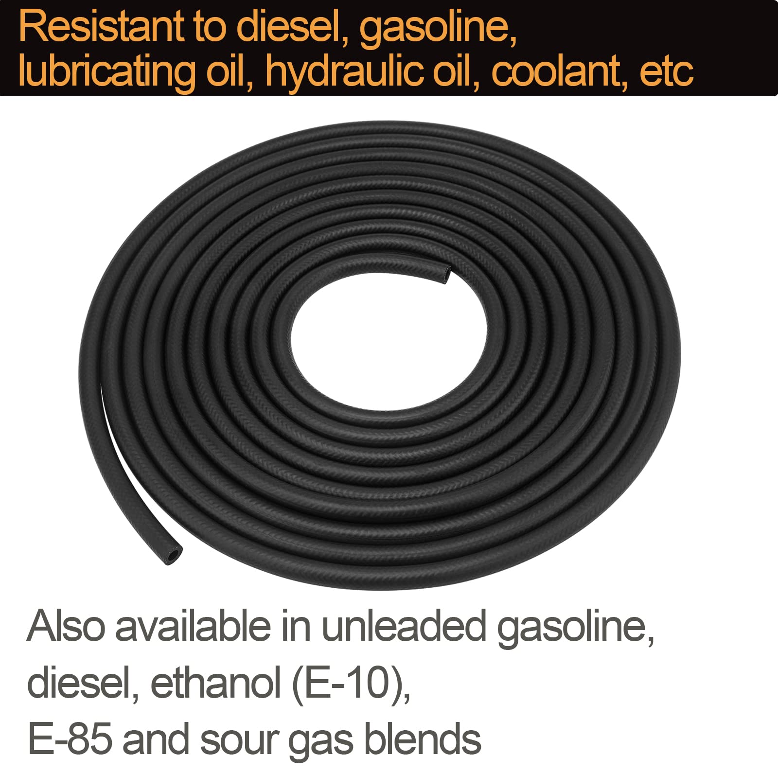 【High Quality Material】 Fuel Hose Made of NBR rubber, resistant to diesel, gasoline, lubricating oil, hydraulic oil, coolant, etc, Also available in unleaded gasoline, diesel, ethanol (E-10), E-85 and sour gas blends.
