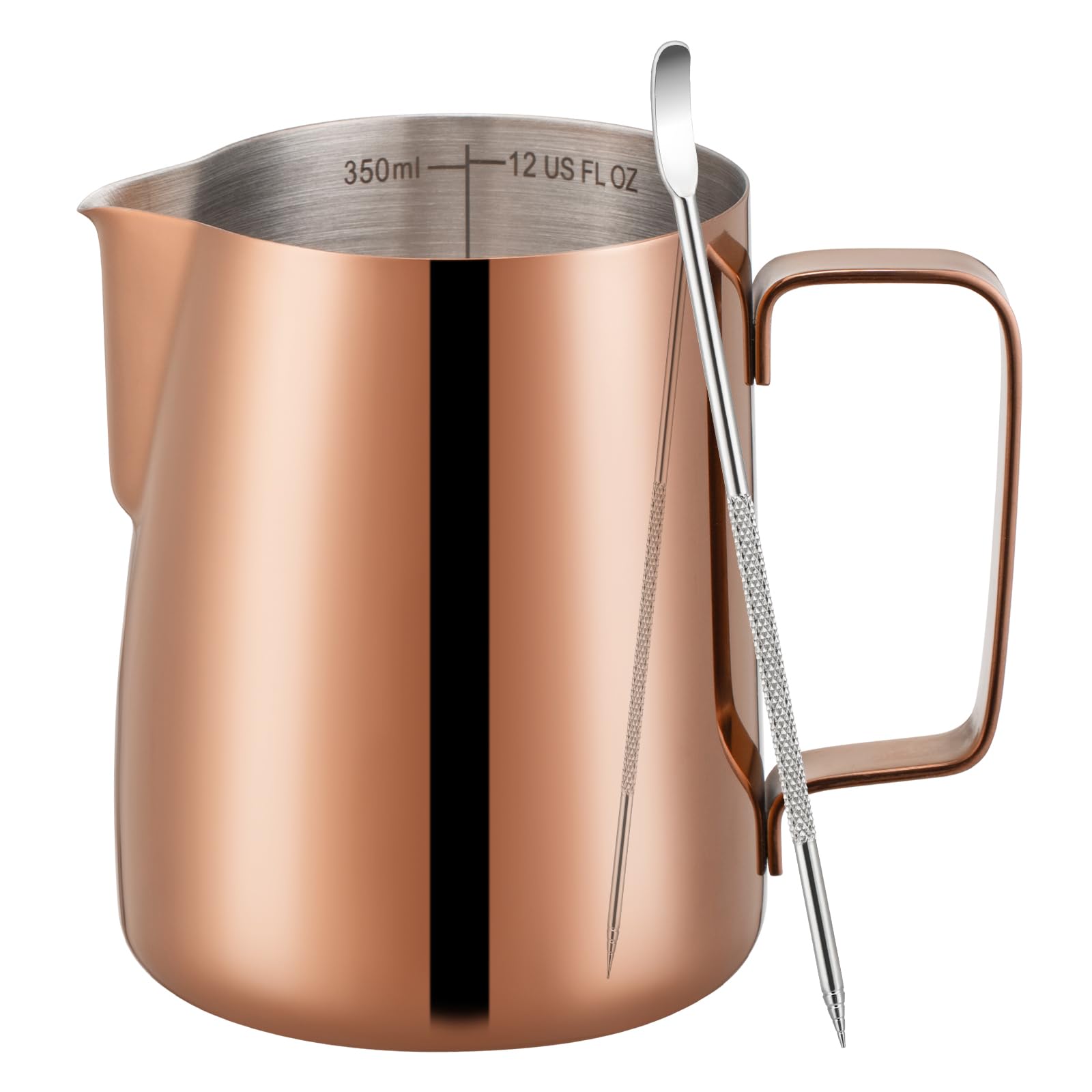 LATTE PEN: Amrules milk frother pitcher comes with a 304 stainless steel latte art pen, which features anti-slip design in the middle for easy use. You can make especial and beautiful patterns on your latte without a trembling hands