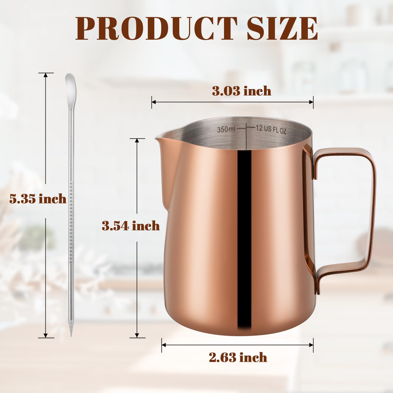 PROPER CAPACITY: The coffee frother cup has clear scale marks inside for you to easily control the milk needed. The marks are lasers printed without notches. It is easy to wash and dishwasher safe without remaining milk foam