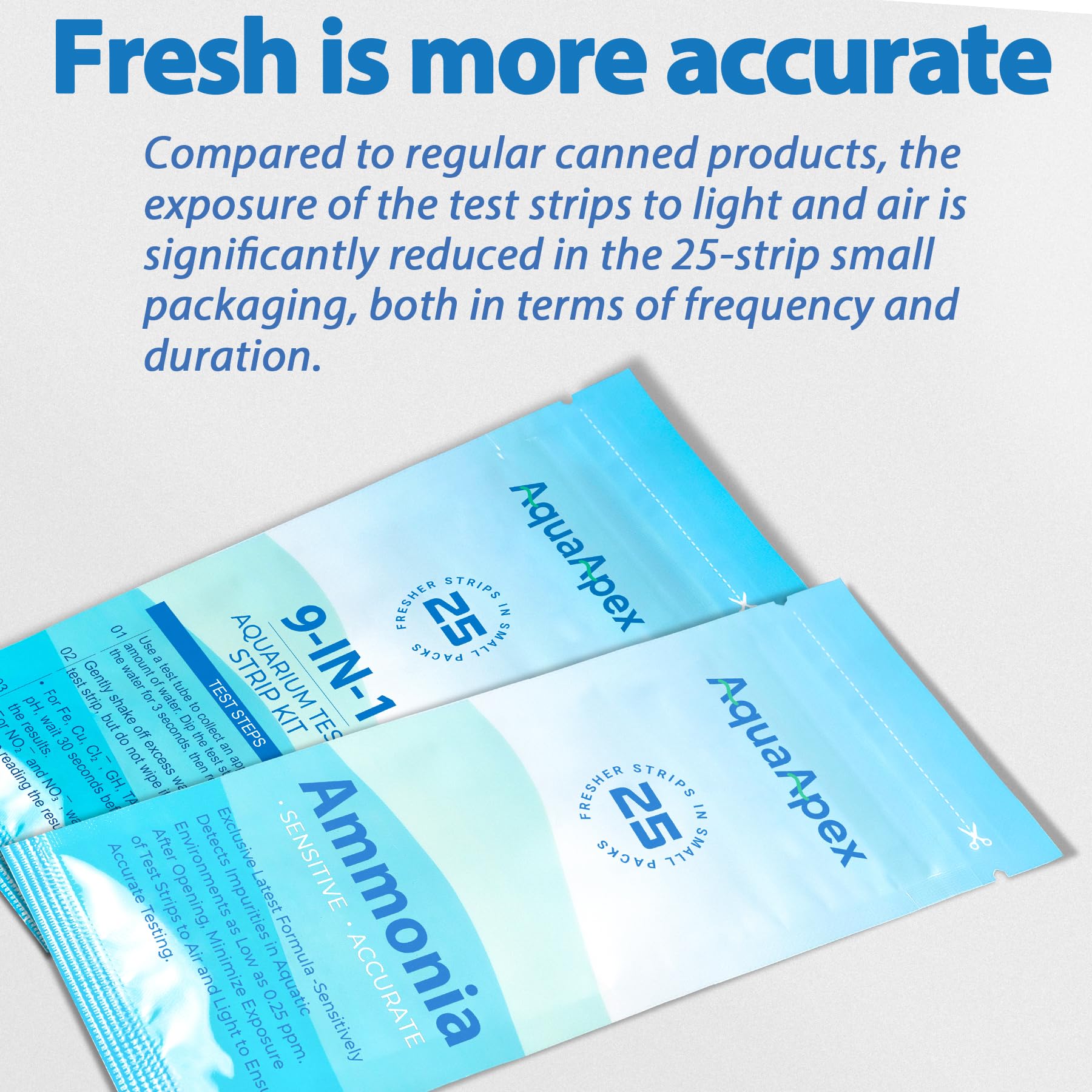 Fresher and more Accurate: our 25-strip small packages minimize exposure to light and air, ensuring precise results for your fish tank test strips