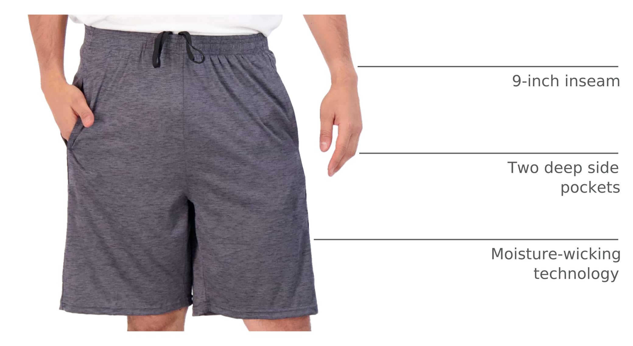5 Pack Menβs Dry-Fit Shorts: Real Essentials menβs 9" inseam shorts for gym, basketball, running, soccer, tennis, pickleball, cycling, baseball, training, walking, jogging, or MMA workouts.