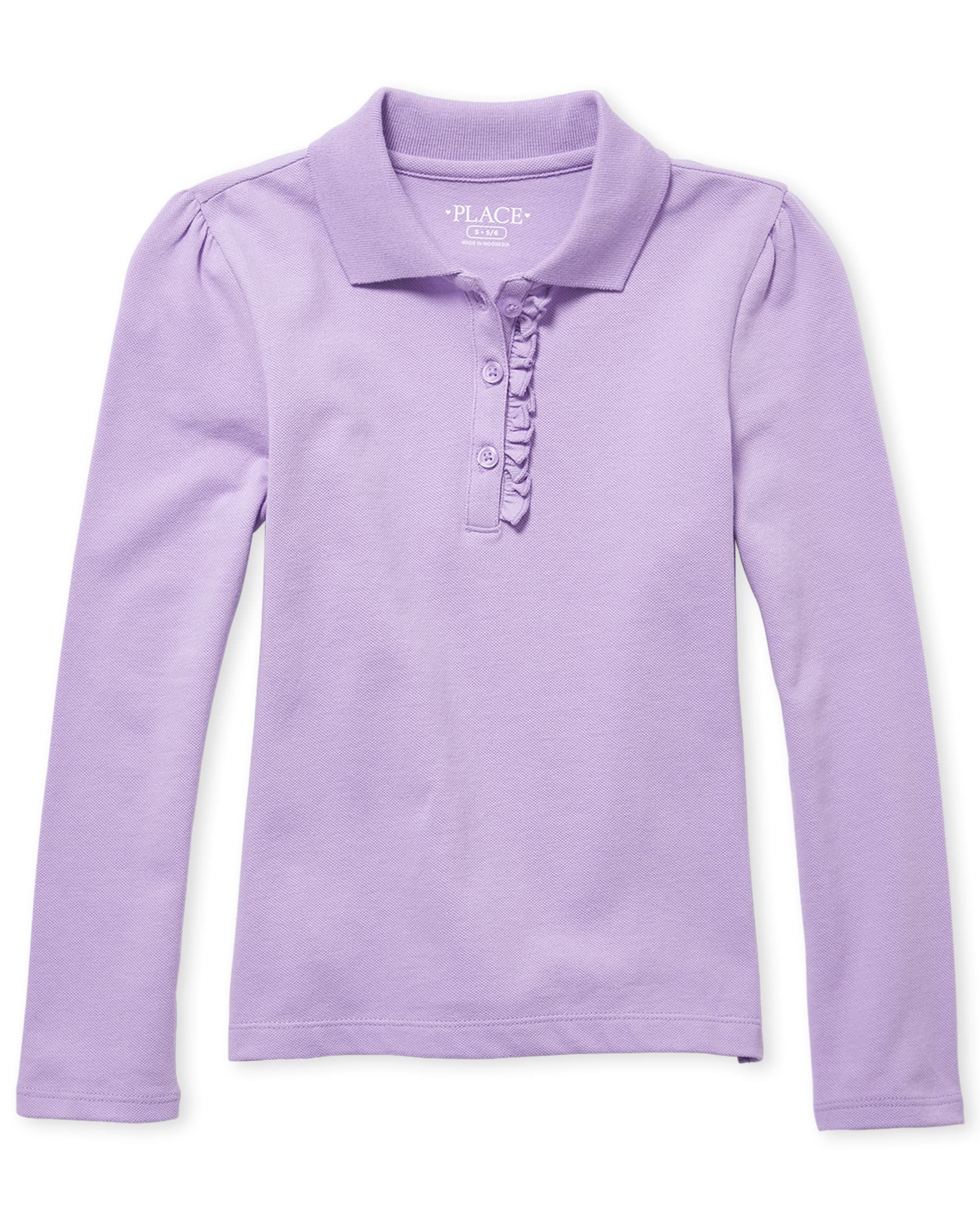 Long Sleeve Ruffle Pique Polo