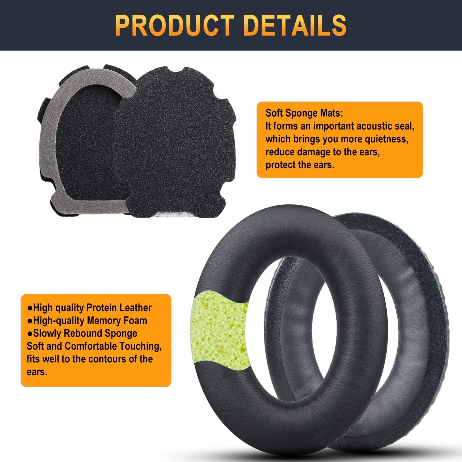 đ§ăExcellent Noise IsolationăThe headphones ear cushions constructed of premium memory foam, this headphone ear covers set insulates your ears with a perfect fit, enhance noise blocking, forms an important acoustic seal, which brings you more quietness.
