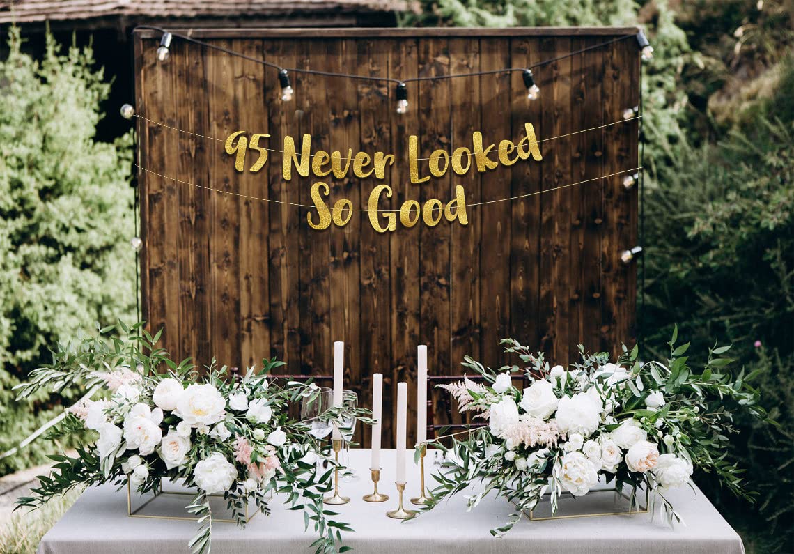 Congrats on 95 years of excellence! This gold glitter banner is the perfect decoration to add a touch of classy decor and welcome your guests to the occasion.