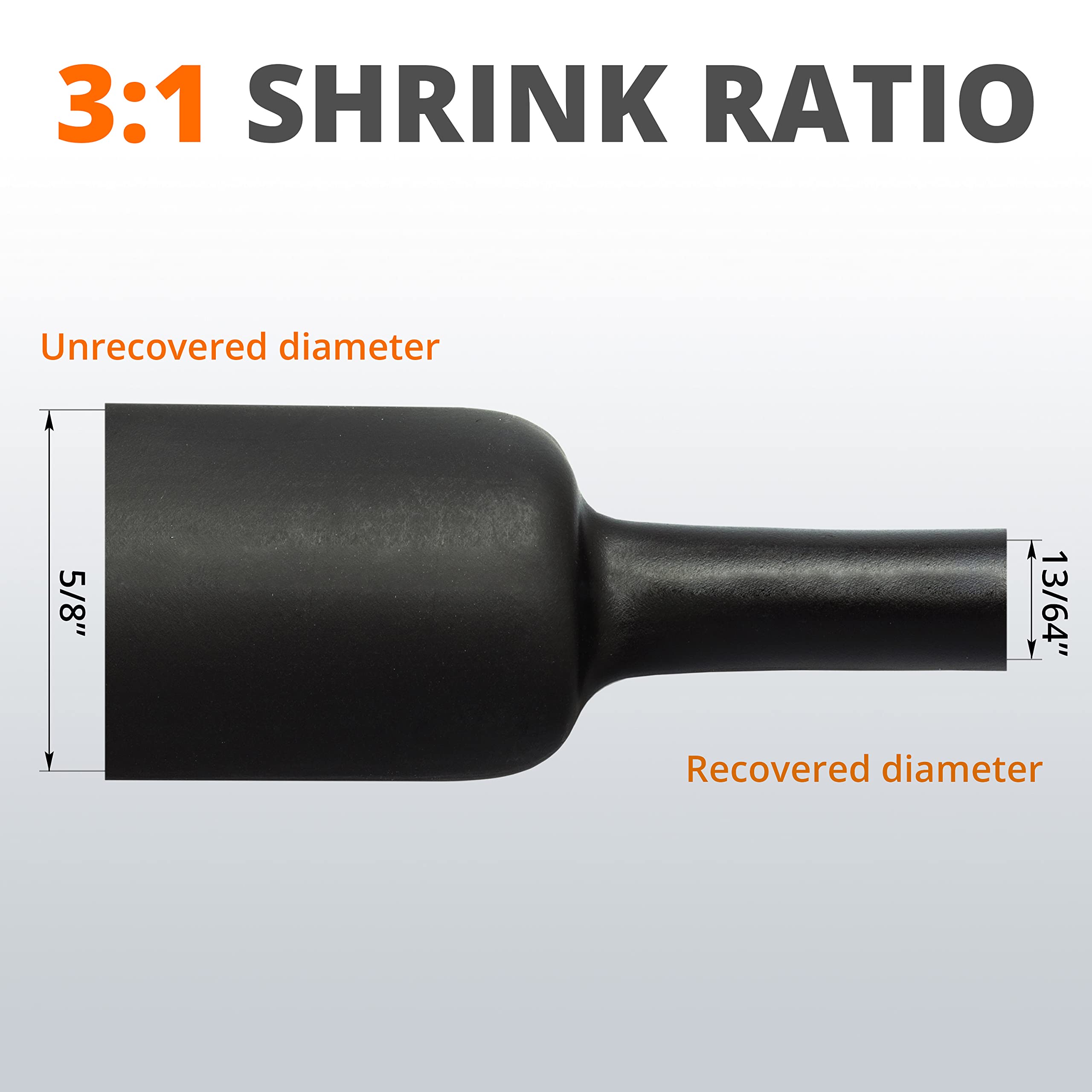3:1 SHRINK RATIO: Wire shrink wrap tubing shrinks to 1/3 of its size for a tight, secure fit. Better than 2:1 tubing. Ideal for wire heat shrink tubing in electrical or automotive use.