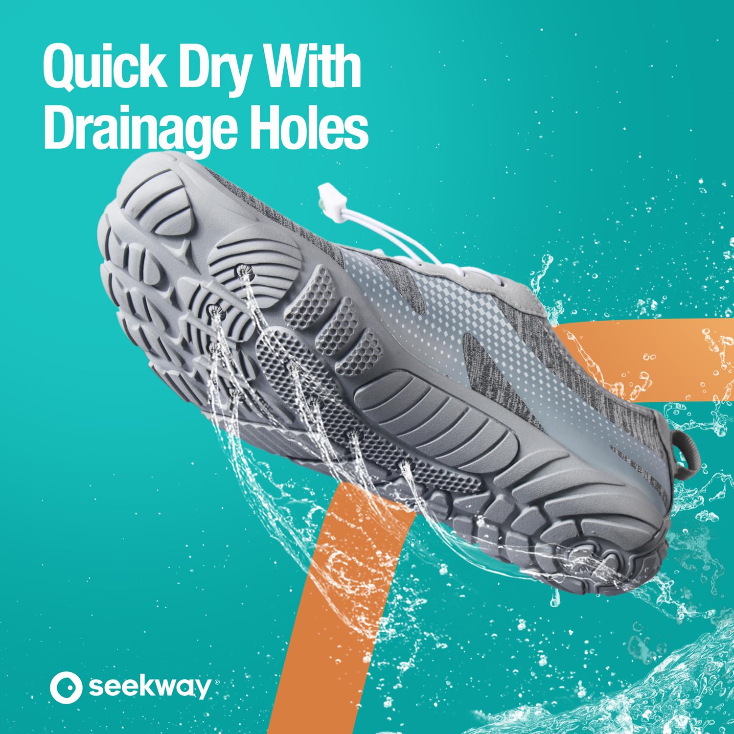 All-round Protection:Thick rubber soles and a toe cap keep your feet completely protected from sharp objects and provide great cushioning. The 3D non-slip treads provide exceptional grip even in slippery conditions. This makes it a great choice for outdoor sports.