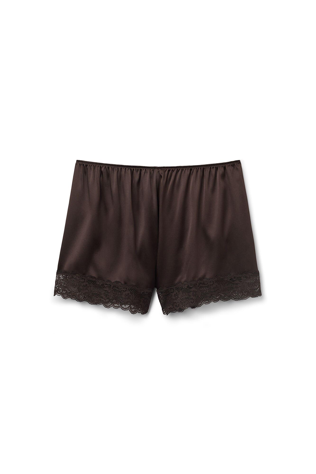 Description Shorts in light stretch silk satin with small side slits. Ideal to wear as a refined pair of shorts for night or as elegant loungewear.